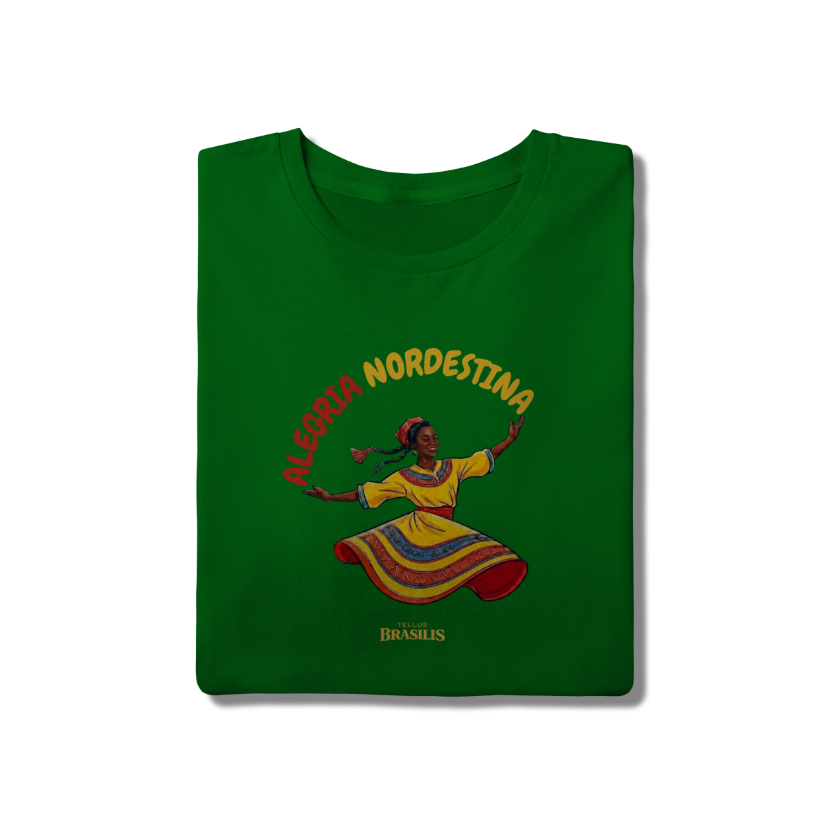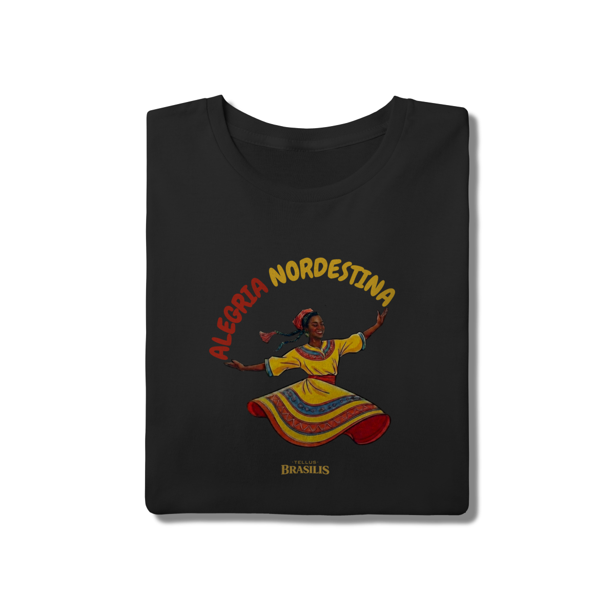 A expressão corporal revela hospitalidade, resistência e orgulho de um povo que transforma desafios em celebração. A palavra “Alegria Nordestina” em destaque reforça esse sentimento coletivo de viver com intensidade, fé e esperança, marcas registradas da região.