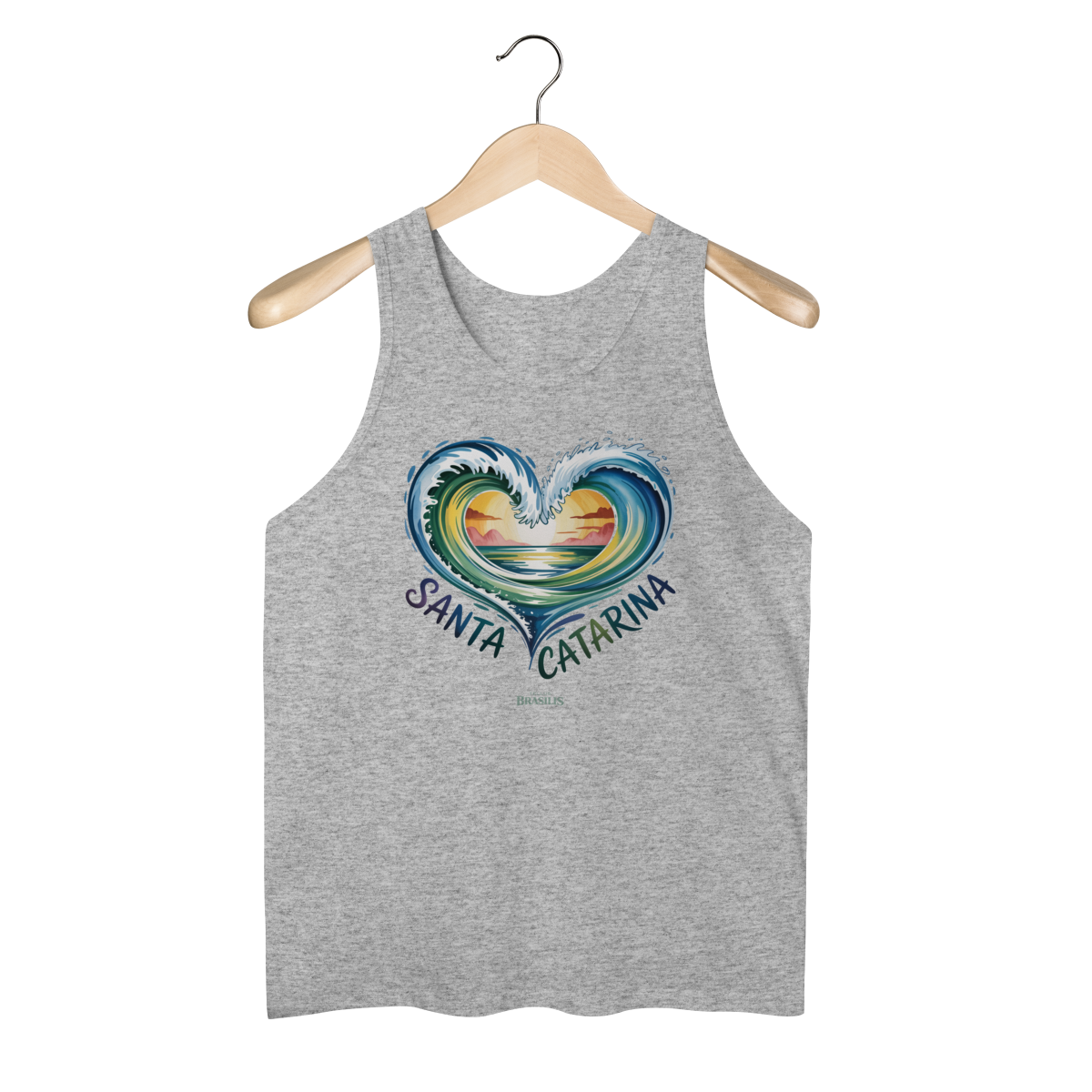 Na versão camiseta regata, a peça ganha ainda mais leveza e atitude, ideal para dias quentes, praia, verão e momentos ao ar livre. Confortável e cheia de identidade, é perfeita para quem ama o litoral catarinense, seja morador, visitante ou apaixonado pelo surf e pelo mar. Além disso, a regata é ideal também como souvenir/lembrança para quem visitou Santa Catarina e deseja guardar uma recordação especial de um estado que encanta pelas praias, natureza e energia única.