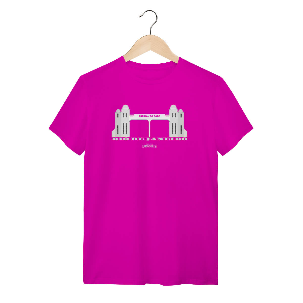 A estampa retrata o icônico pórtico de entrada de Arraial do Cabo, no Rio de Janeiro, símbolo de boas-vindas a um dos destinos mais encantadores do litoral brasileiro. Com design limpo e marcante, a arte destaca a arquitetura característica do pórtico, representando a identidade da cidade conhecida por suas praias de águas cristalinas, areias brancas e paisagens naturais de tirar o fôlego.
