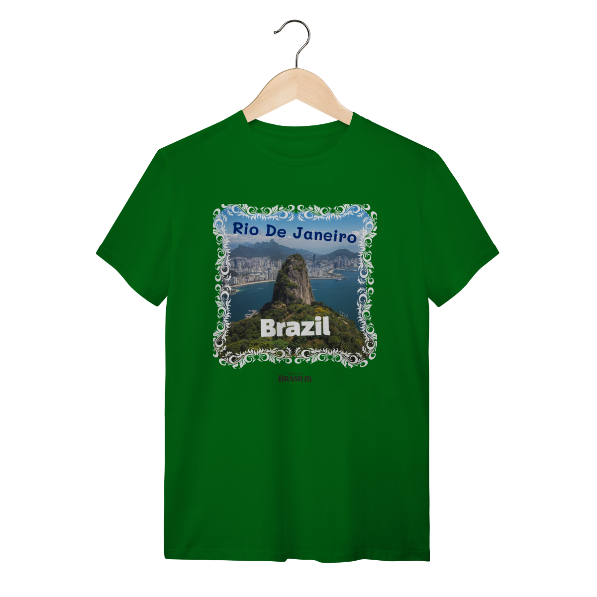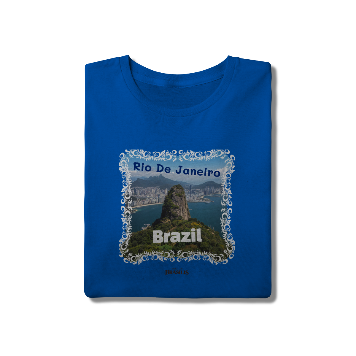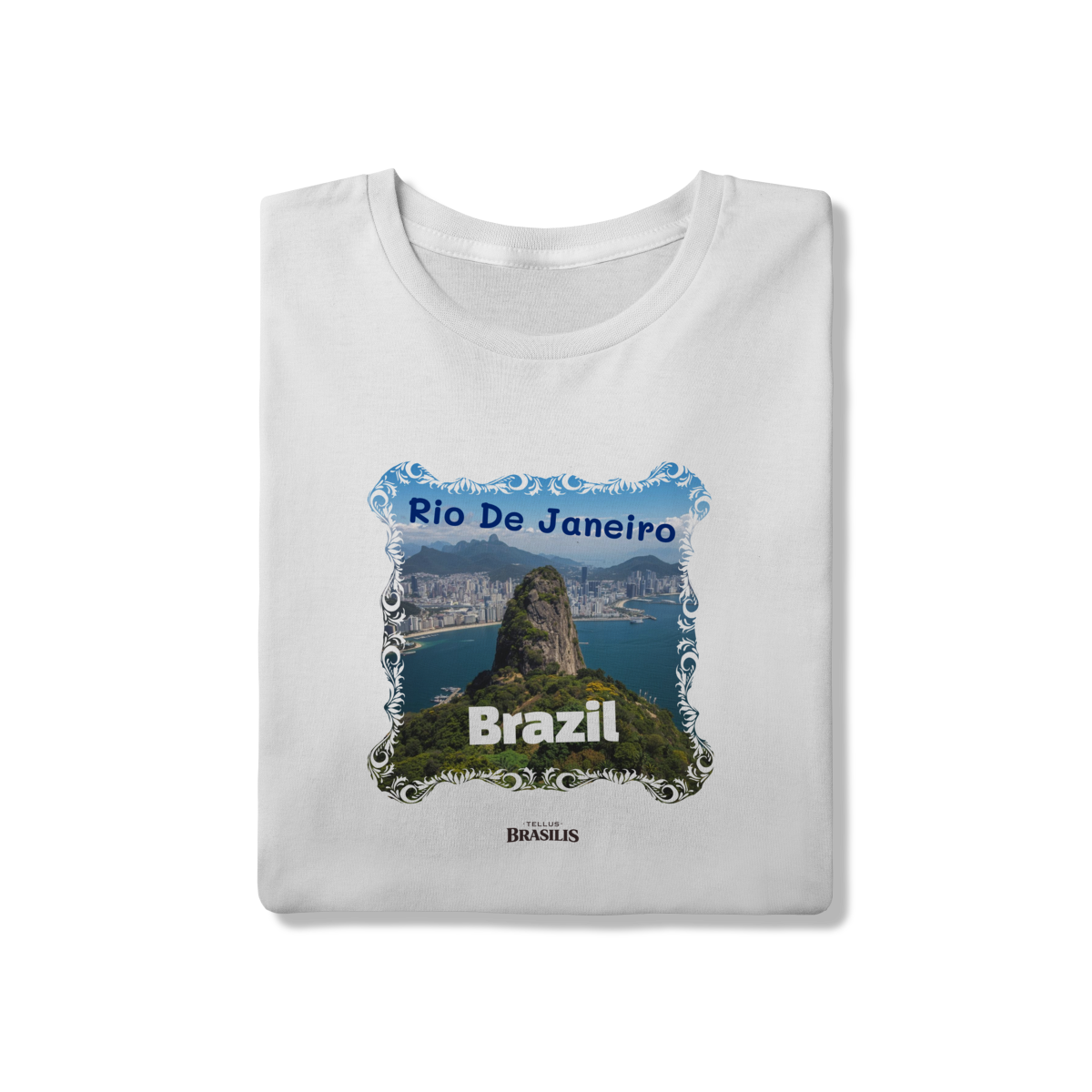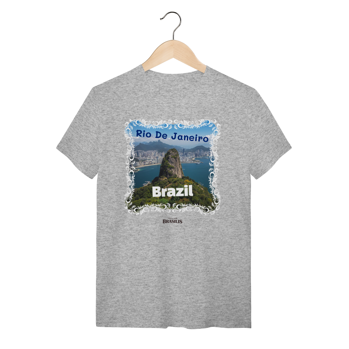 Esta camiseta apresenta uma leitura clássica e imponente do Rio de Janeiro, destacando um de seus cenários mais icônicos: o relevo marcante que se projeta sobre o mar, cercado pela Baía de Guanabara e pela paisagem urbana que faz do Rio um dos destinos mais reconhecidos do mundo.