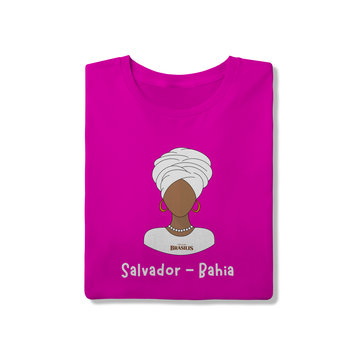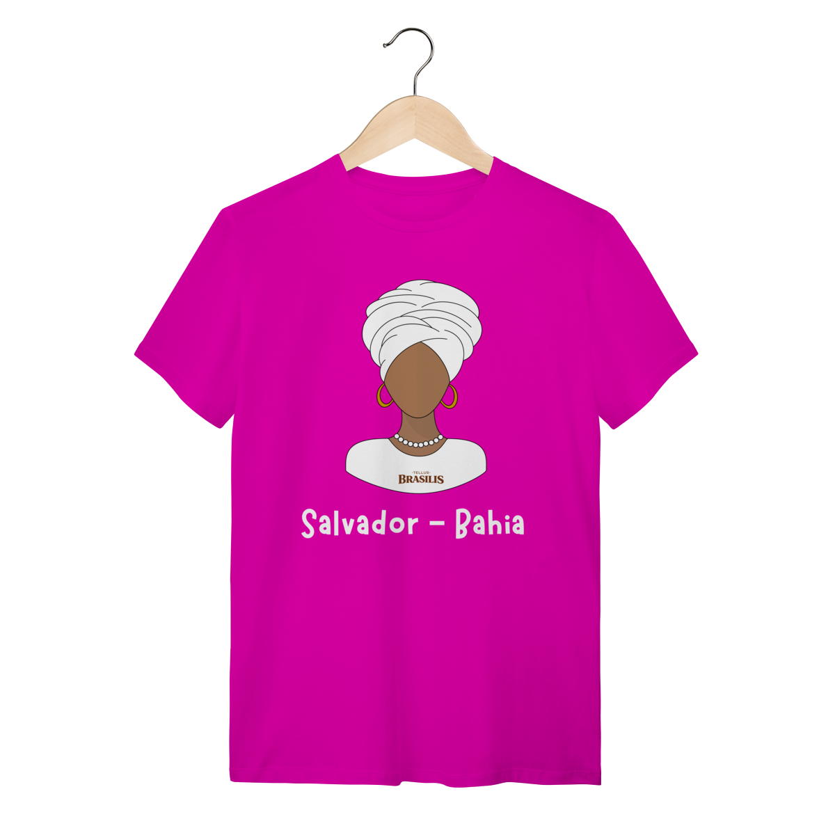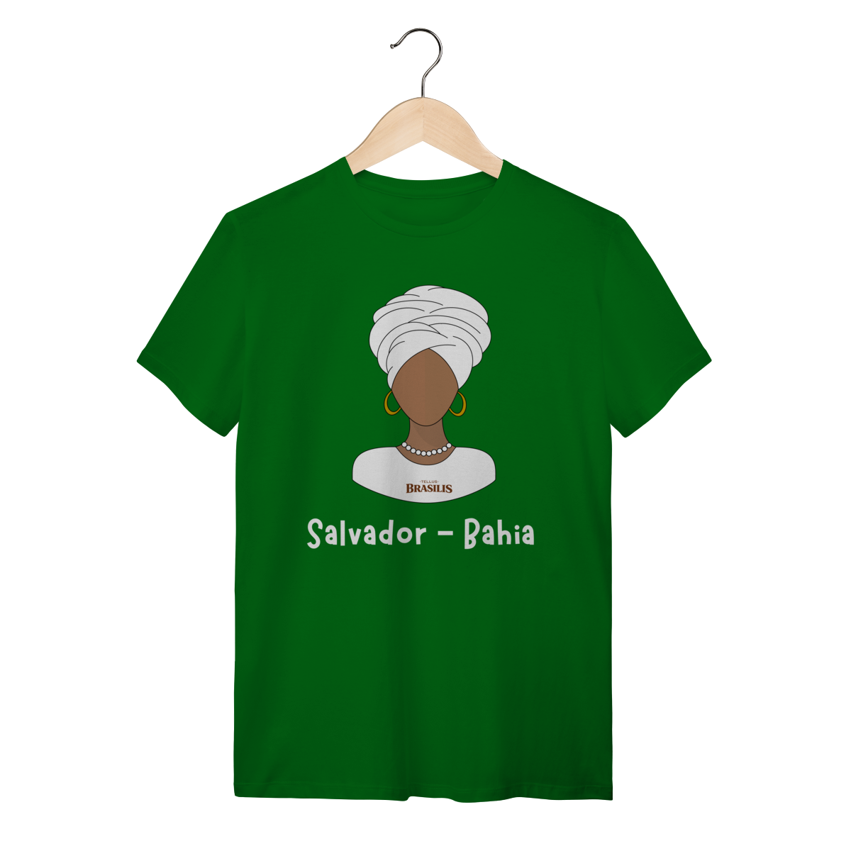 Esta camisa homenageia a baiana, um dos maiores símbolos culturais de Salvador e da Bahia. A ilustração minimalista destaca o turbante branco, os brincos, o colar e a vestimenta tradicional, representando elegância, ancestralidade e a forte herança africana que molda a identidade baiana. É uma estampa que transmite respeito à cultura, à fé e às tradições que fazem de Salvador um dos centros culturais mais marcantes do Brasil.