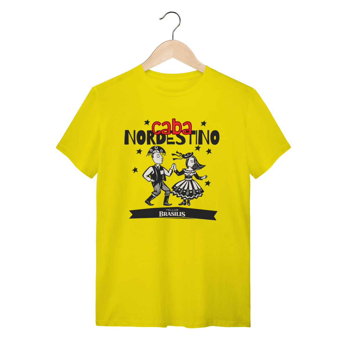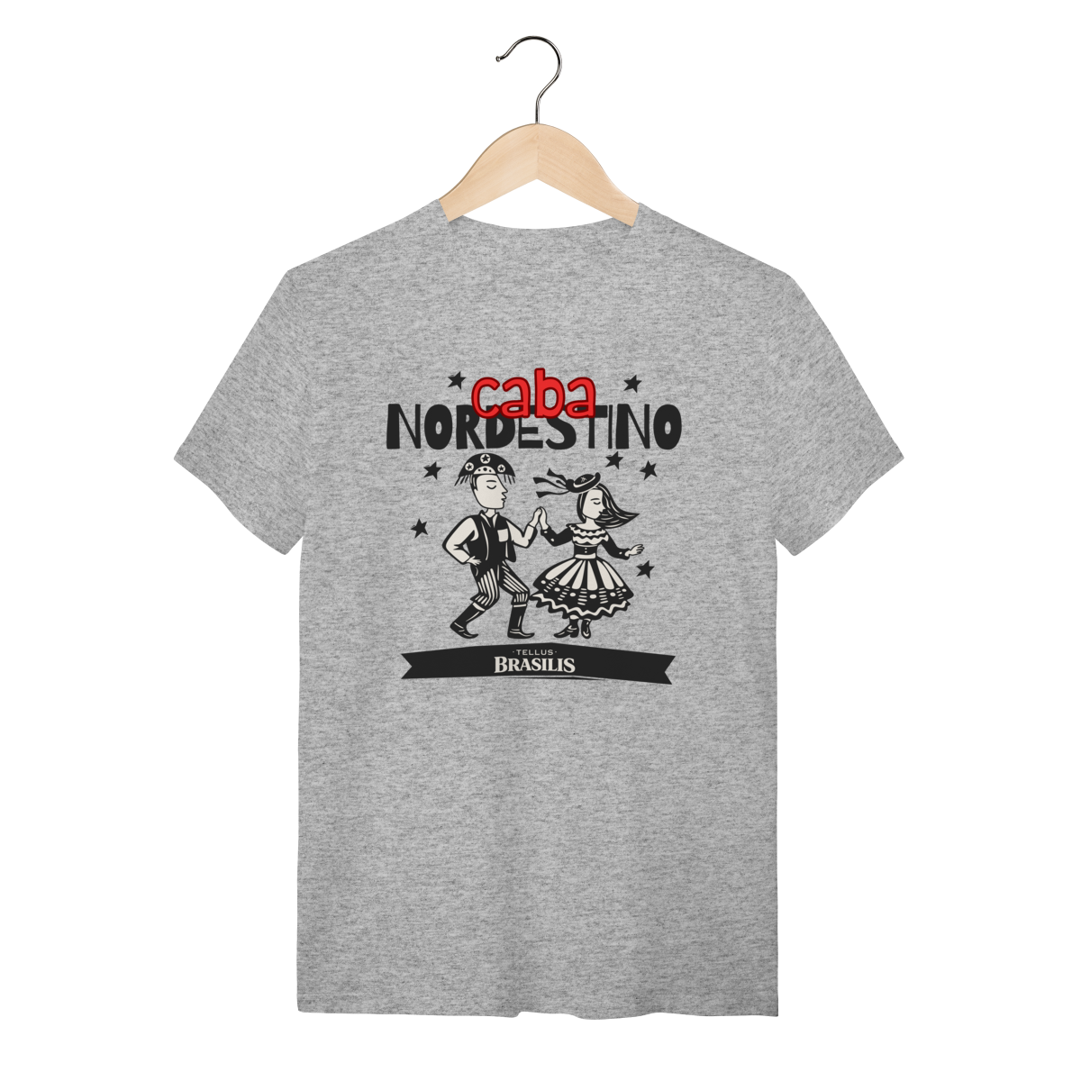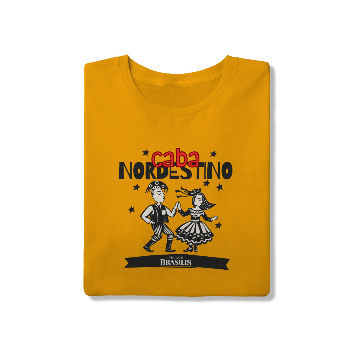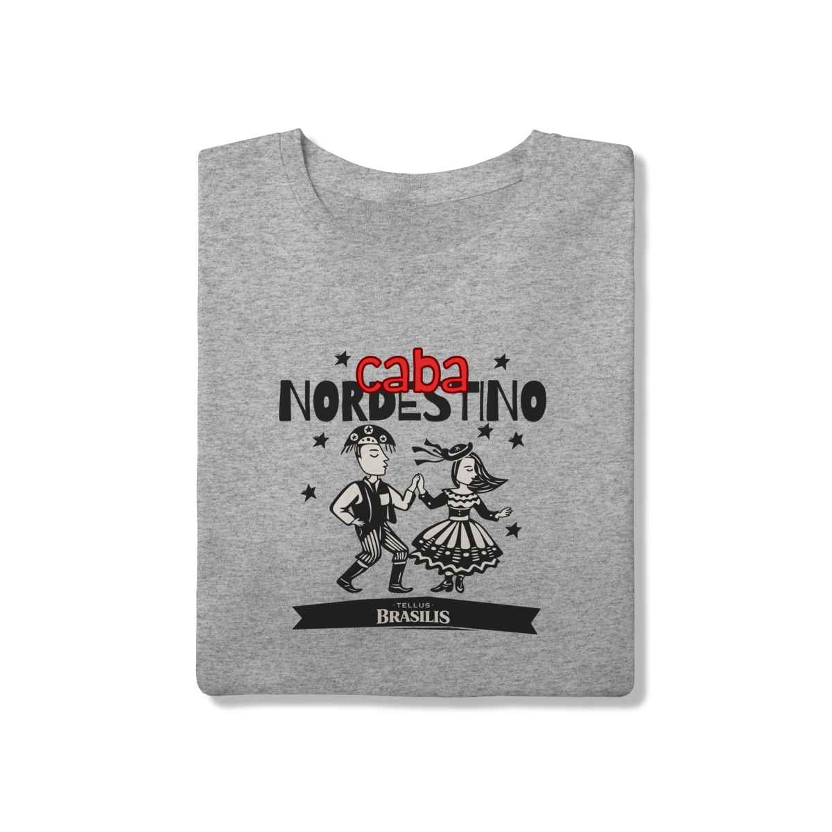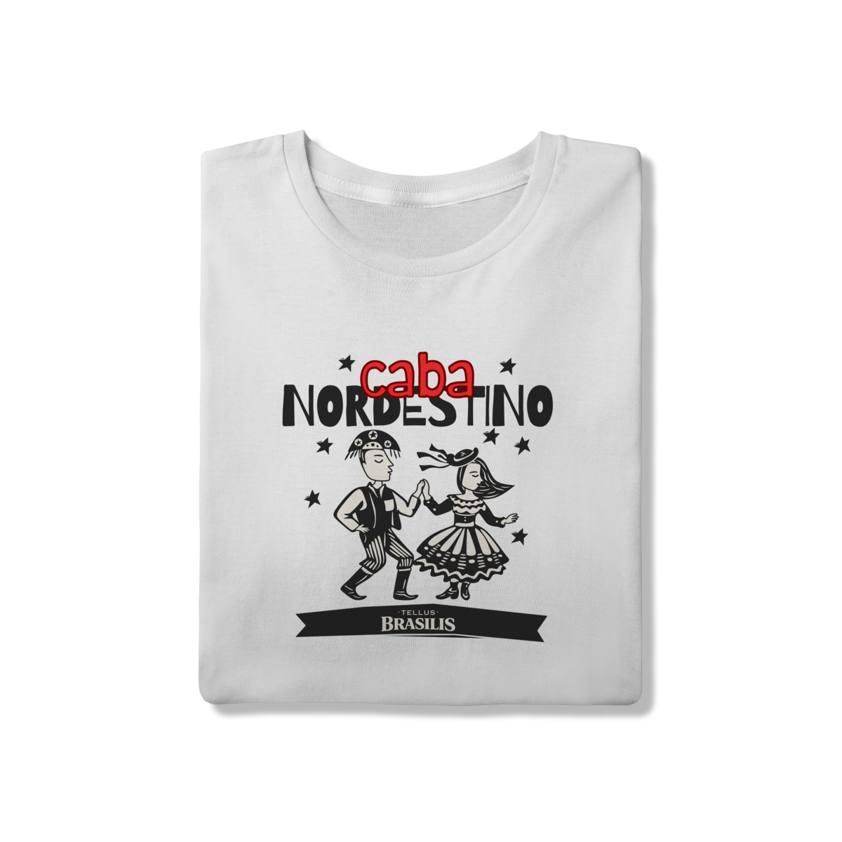 Esta camisa celebra com orgulho a identidade nordestina, trazendo a expressão “caba nordestino” como símbolo de pertencimento, força e alegria. A ilustração mostra um casal dançando ao som do forró, com trajes tradicionais e movimento leve, representando a cultura popular, as festas juninas e o espírito acolhedor do Nordeste.