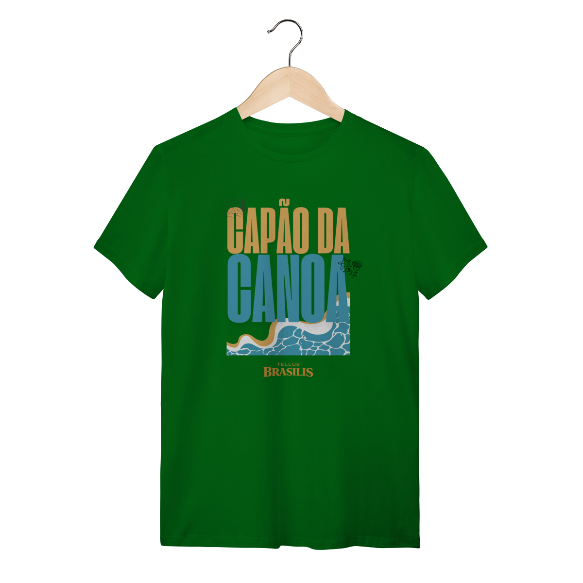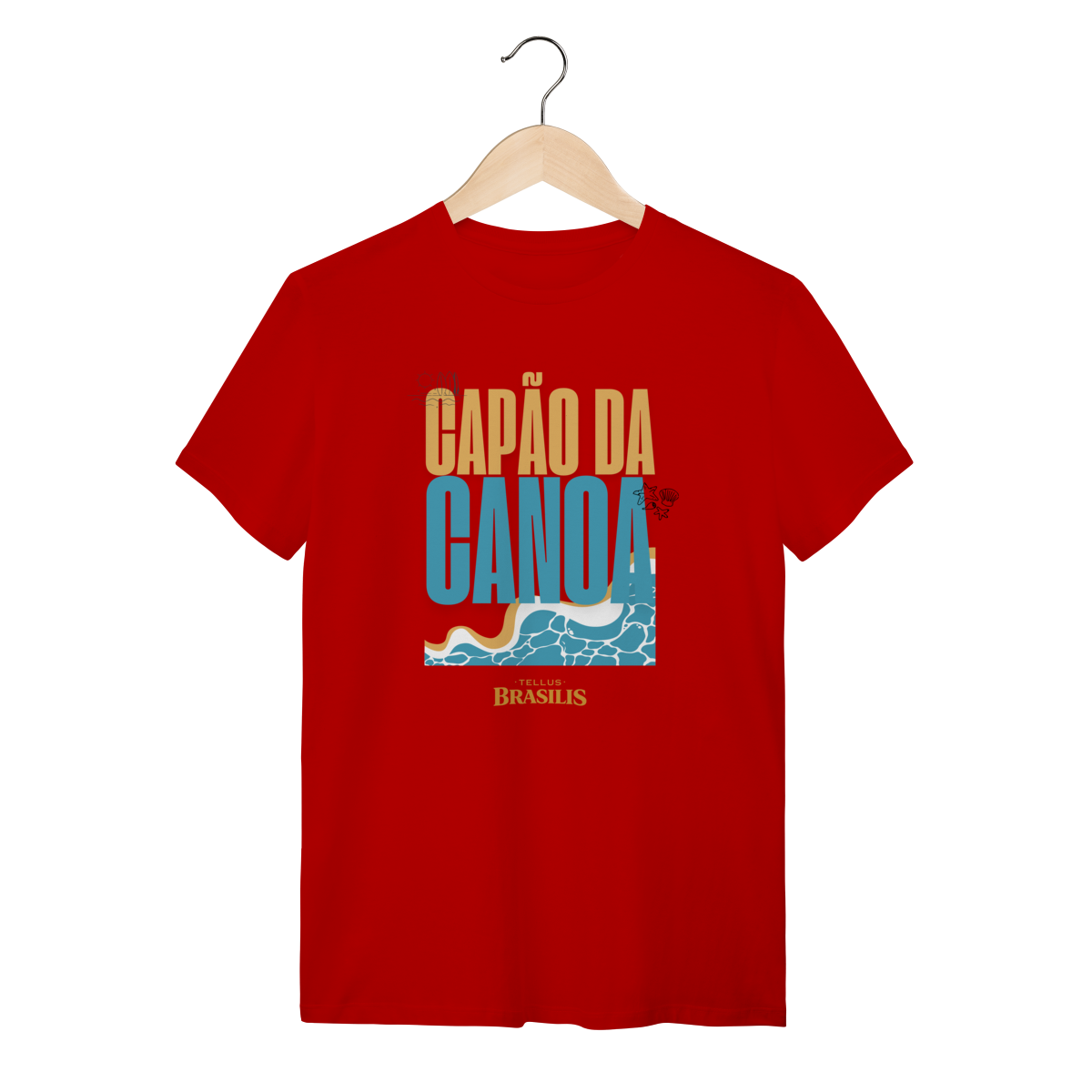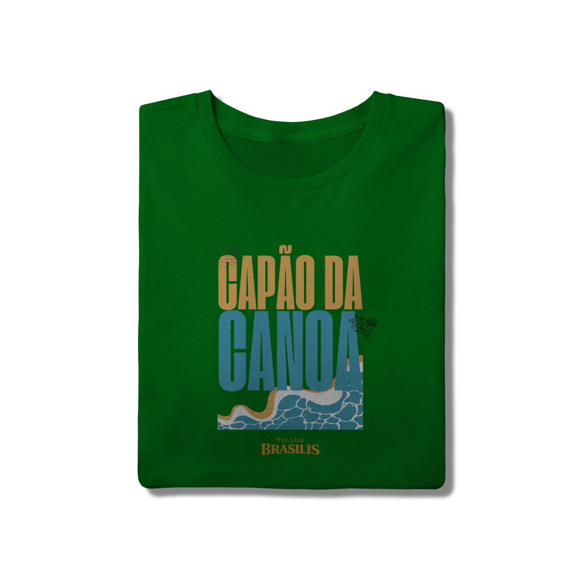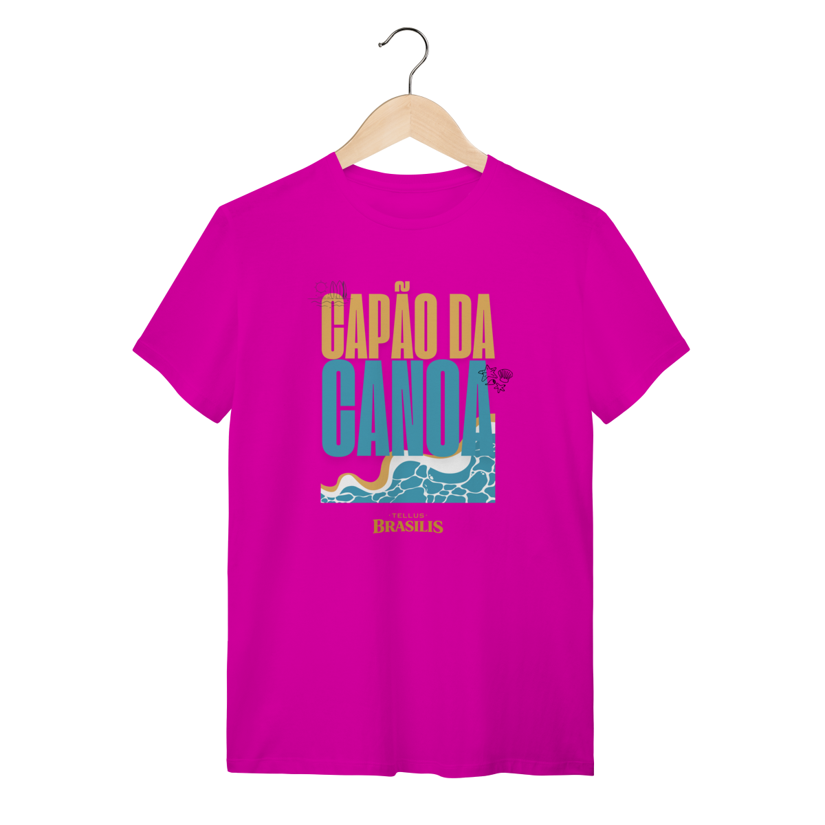 Esta camisa celebra Capão da Canoa, uma das praias mais emblemáticas do litoral gaúcho, traduzindo em poucos elementos visuais tudo o que o lugar representa. A tipografia forte, as cores do sol e do mar e o desenho das ondas remetem imediatamente ao encontro simples e essencial entre areia, água e céu — símbolos do verão, do descanso e das memórias vividas à beira-mar.