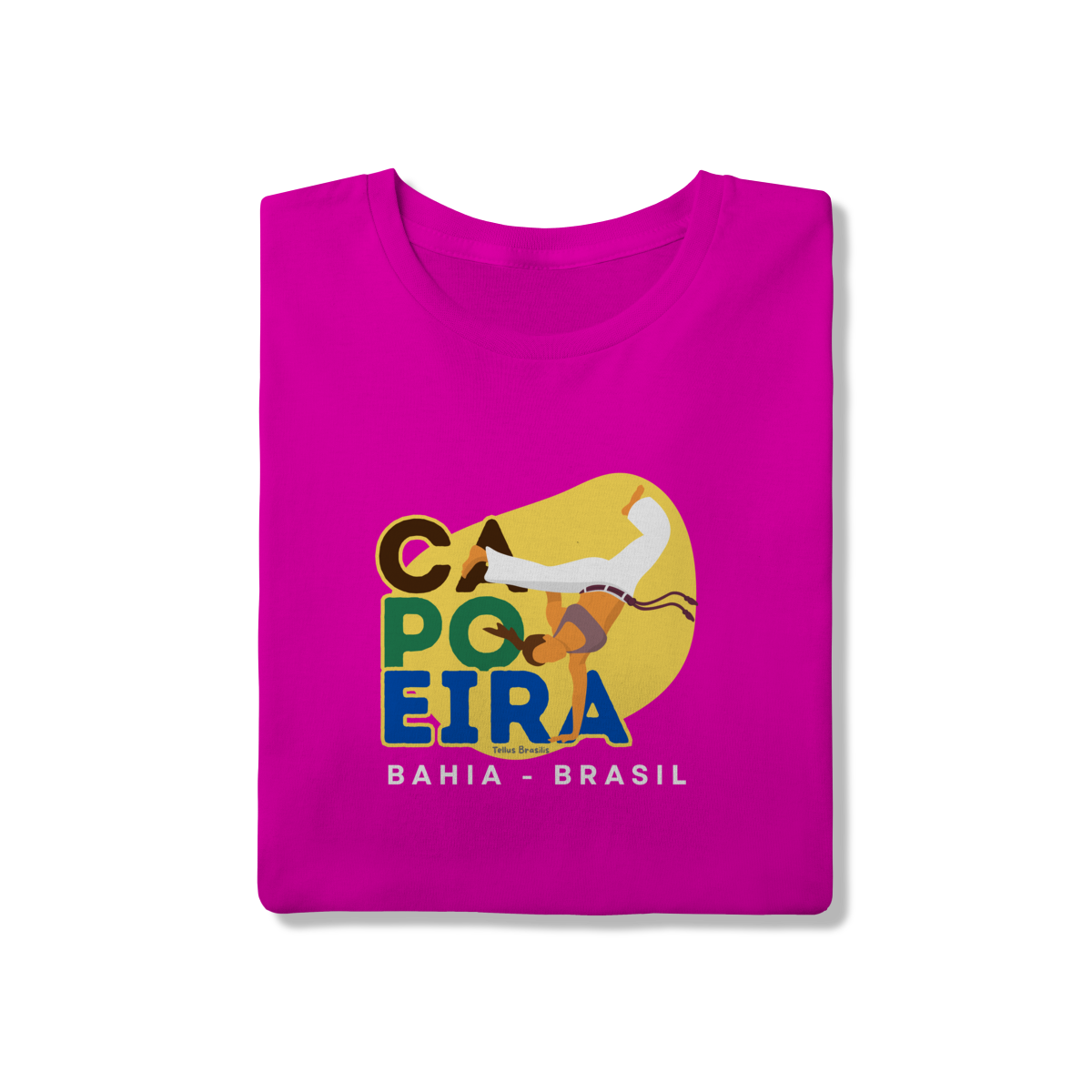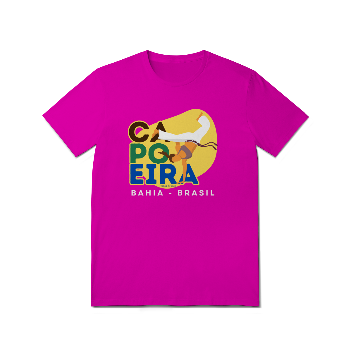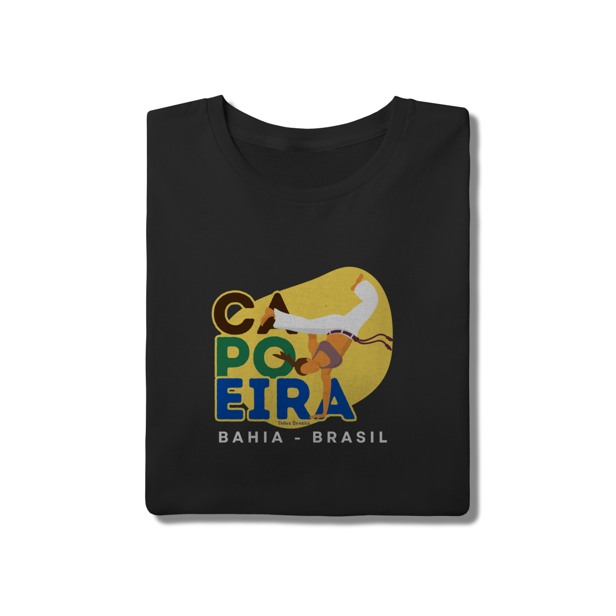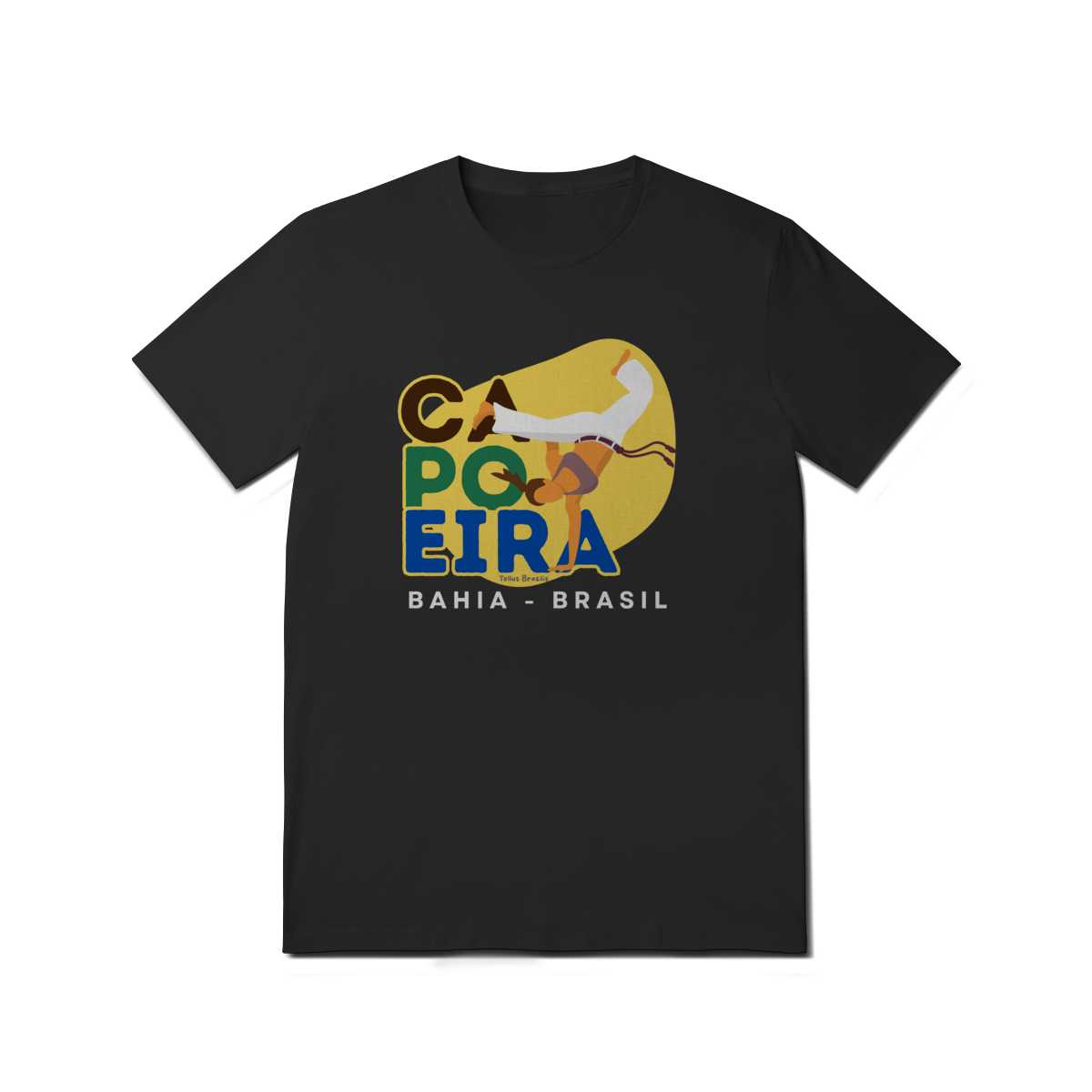 Esta camisa celebra a capoeira, manifestação cultural brasileira cuja origem está ligada à Bahia, berço histórico dessa arte que une luta, dança, música e ancestralidade afro-brasileira. A estampa valoriza o movimento, o ritmo e a resistência cultural que fizeram da capoeira um símbolo reconhecido mundialmente.