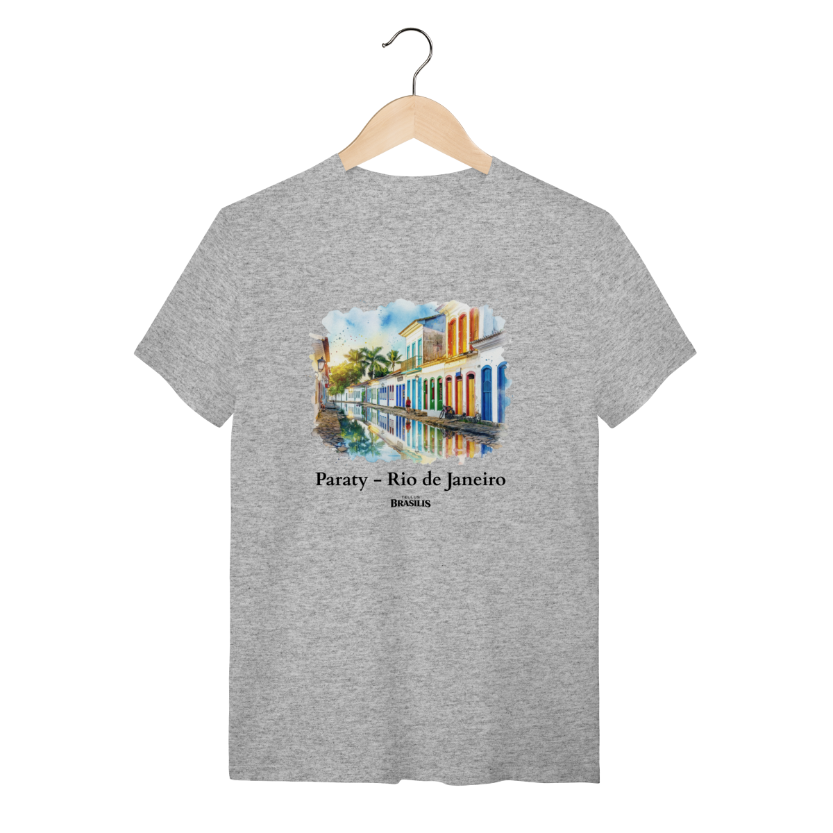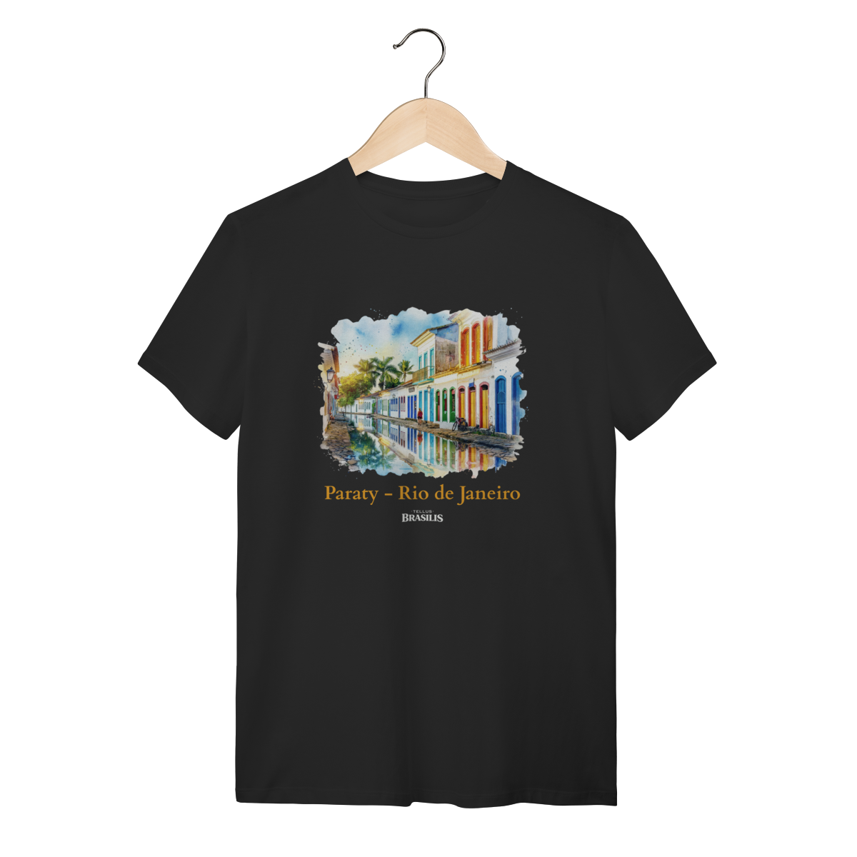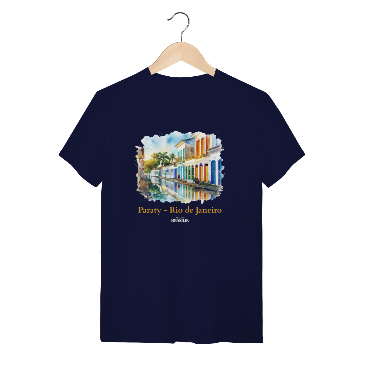 Esta estampa retrata com delicadeza e charme a cidade antiga de Paraty, no Rio de Janeiro, destacando suas ruas de pedra, o casario colonial preservado e as fachadas coloridas que dão vida ao centro histórico. Em estilo aquarela, a cena captura a harmonia entre arquitetura e natureza, com portas e janelas em tons vibrantes refletidas na água, palmeiras ao fundo e a atmosfera tranquila que é marca registrada da cidade. O efeito artístico transmite leveza, nostalgia e autenticidade, celebrando a história, a cultura e o ritmo sereno de Paraty.