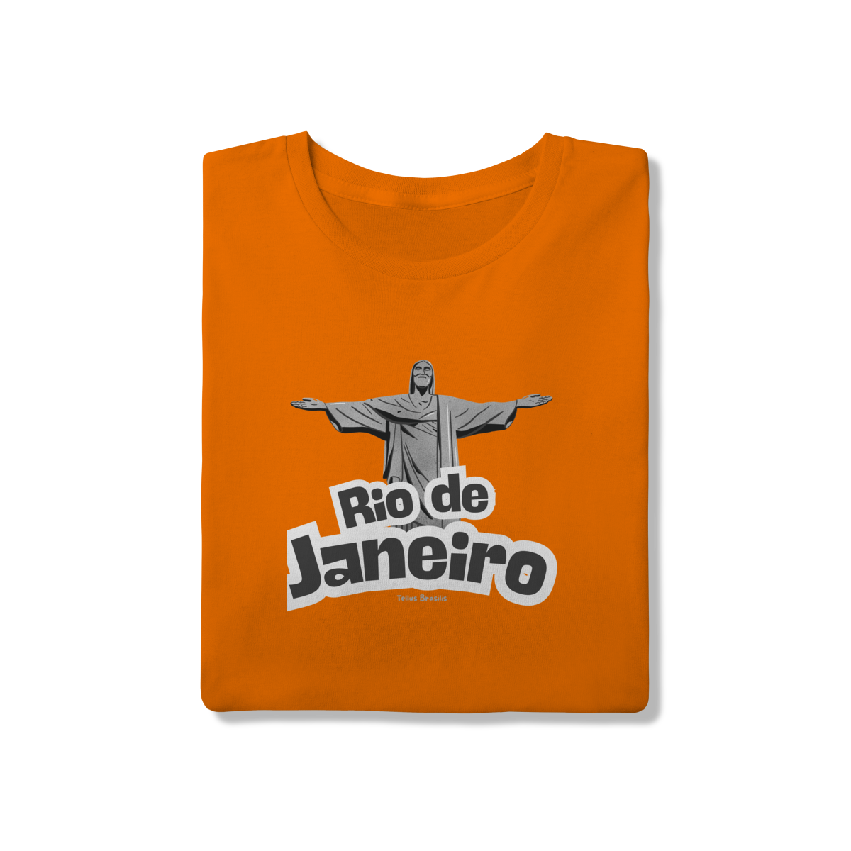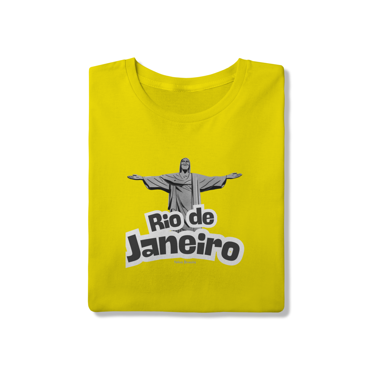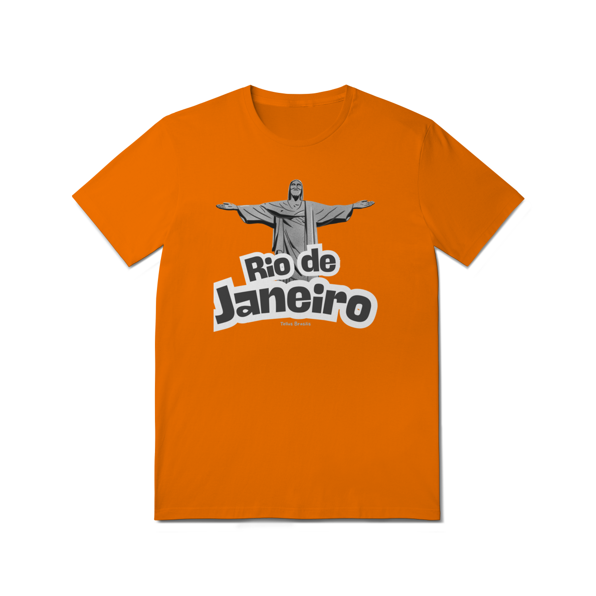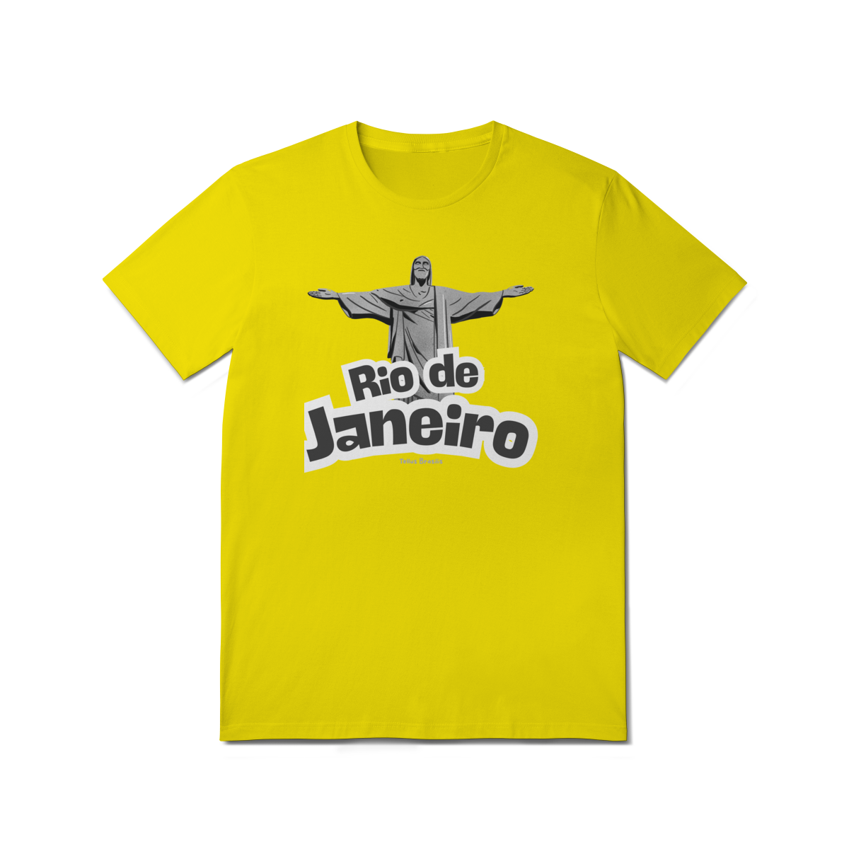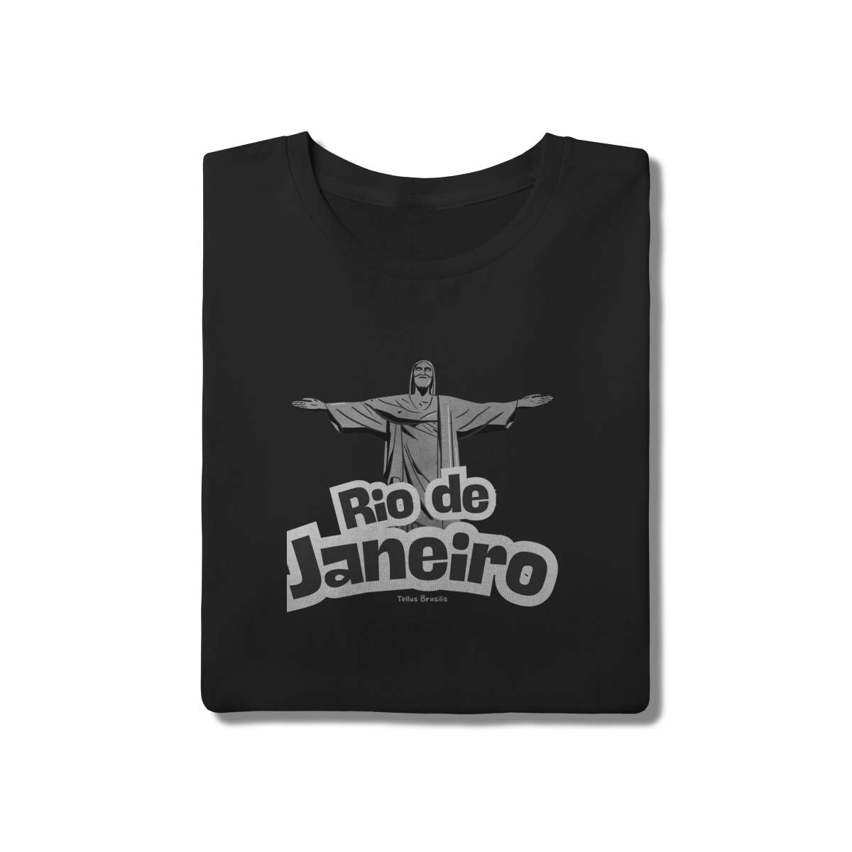 O nome Rio de Janeiro aparece em tipografia robusta e dinâmica, reforçando o caráter urbano e icônico da estampa. A composição transmite orgulho, pertencimento e admiração por uma das cidades mais reconhecidas do mundo, conectando espiritualidade, paisagem e cultura.