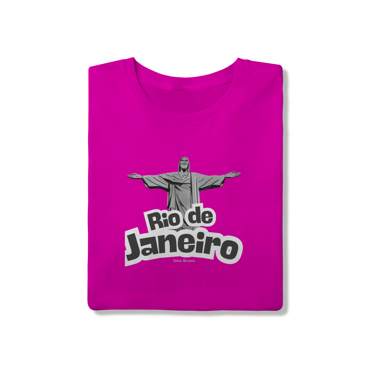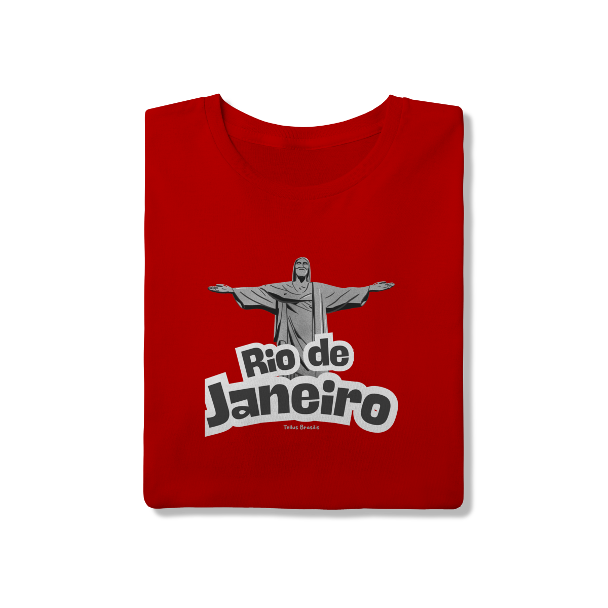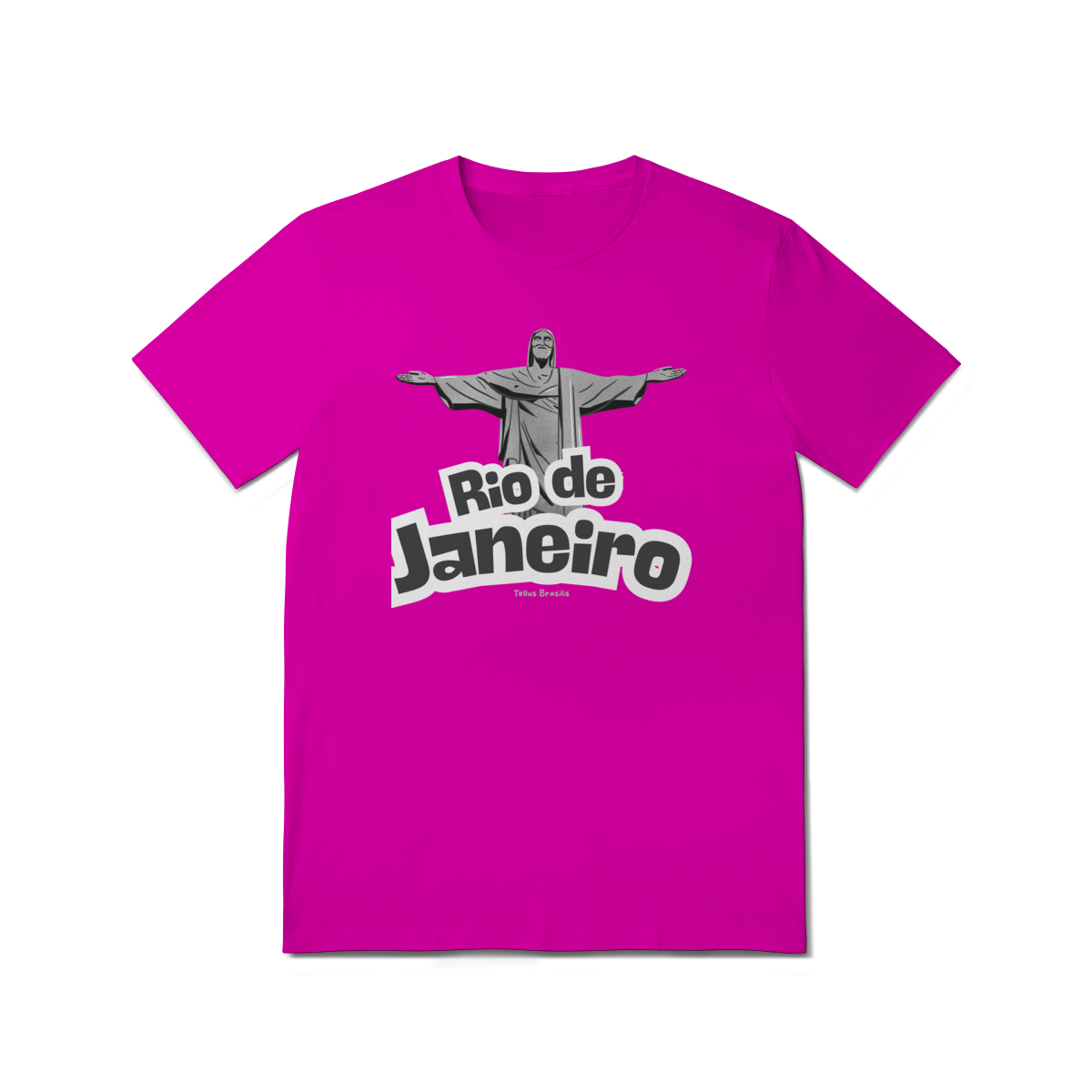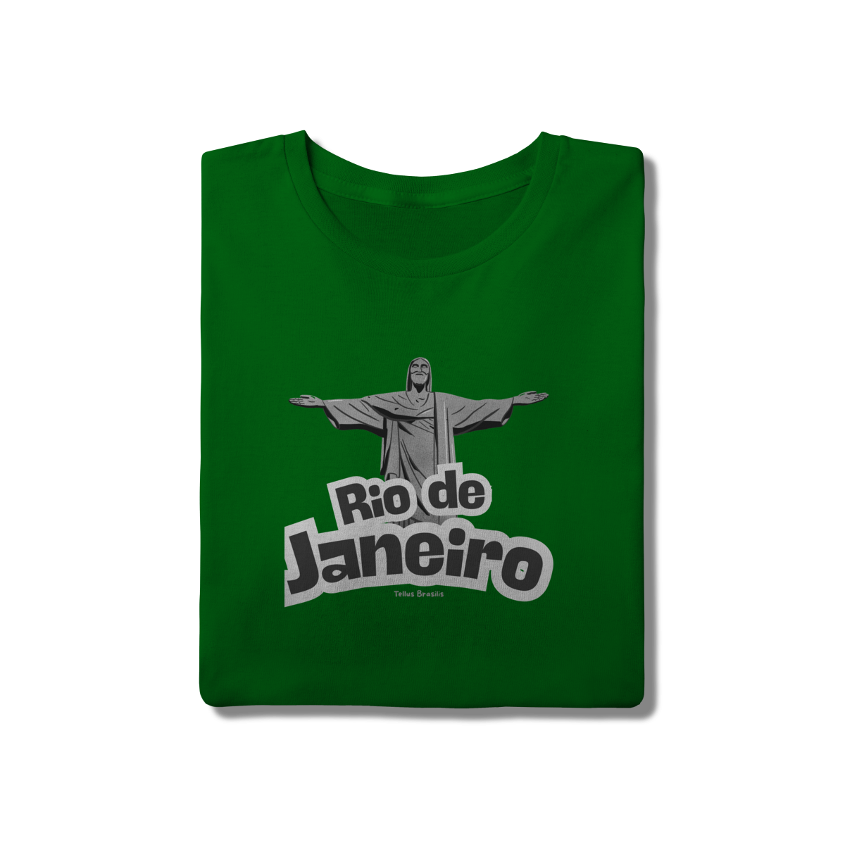 O nome Rio de Janeiro aparece em tipografia robusta e dinâmica, reforçando o caráter urbano e icônico da estampa. A composição transmite orgulho, pertencimento e admiração por uma das cidades mais reconhecidas do mundo, conectando espiritualidade, paisagem e cultura.