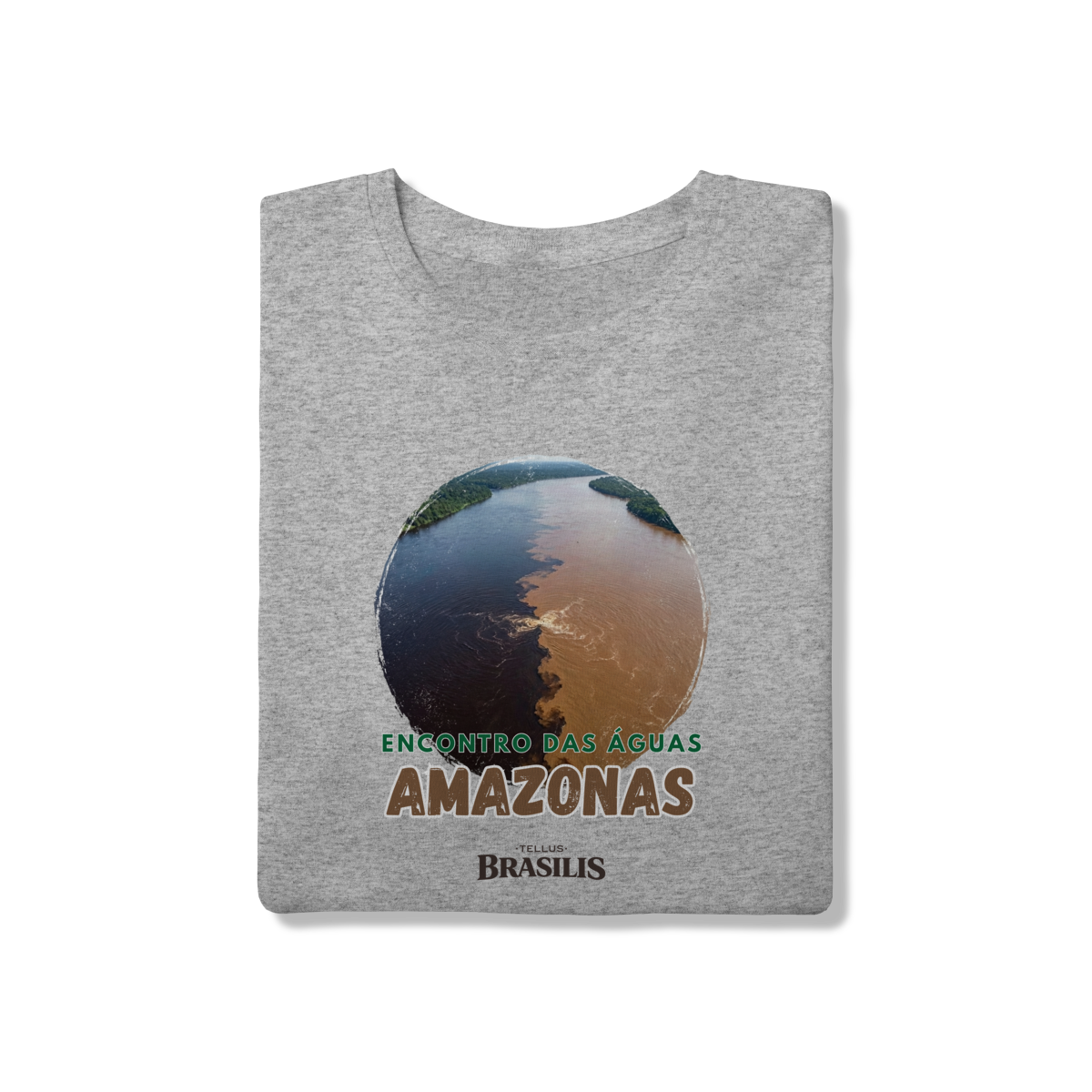 Esse espetáculo da natureza acontece devido às diferenças de temperatura, velocidade e densidade das águas, criando uma cena única, poderosa e visualmente fascinante. A vista aérea destaca a grandiosidade dos rios, cercados pela mata exuberante, simbolizando a força da Amazônia e a riqueza natural do Brasil.