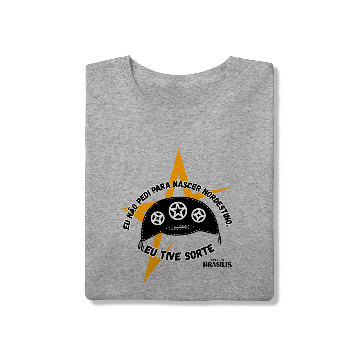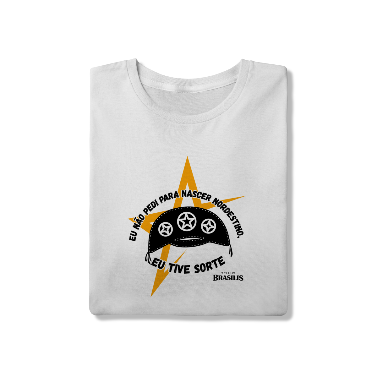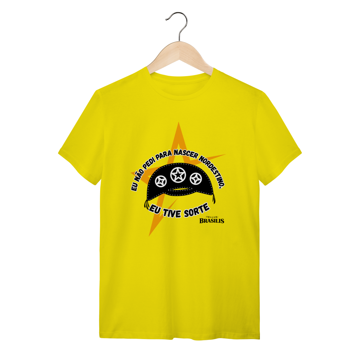 Essa camisa é uma declaração direta de orgulho e identidade. Com tipografia marcante em branco sobre fundo escuro e elementos gráficos fortes em tons de amarelo, a arte transmite atitude, humor e pertencimento. A frase “Eu não pedi para ser nordestino — eu tive sorte” resume, de forma simples e poderosa, o sentimento de quem carrega no peito a força, a cultura e a resiliência do Nordeste.
