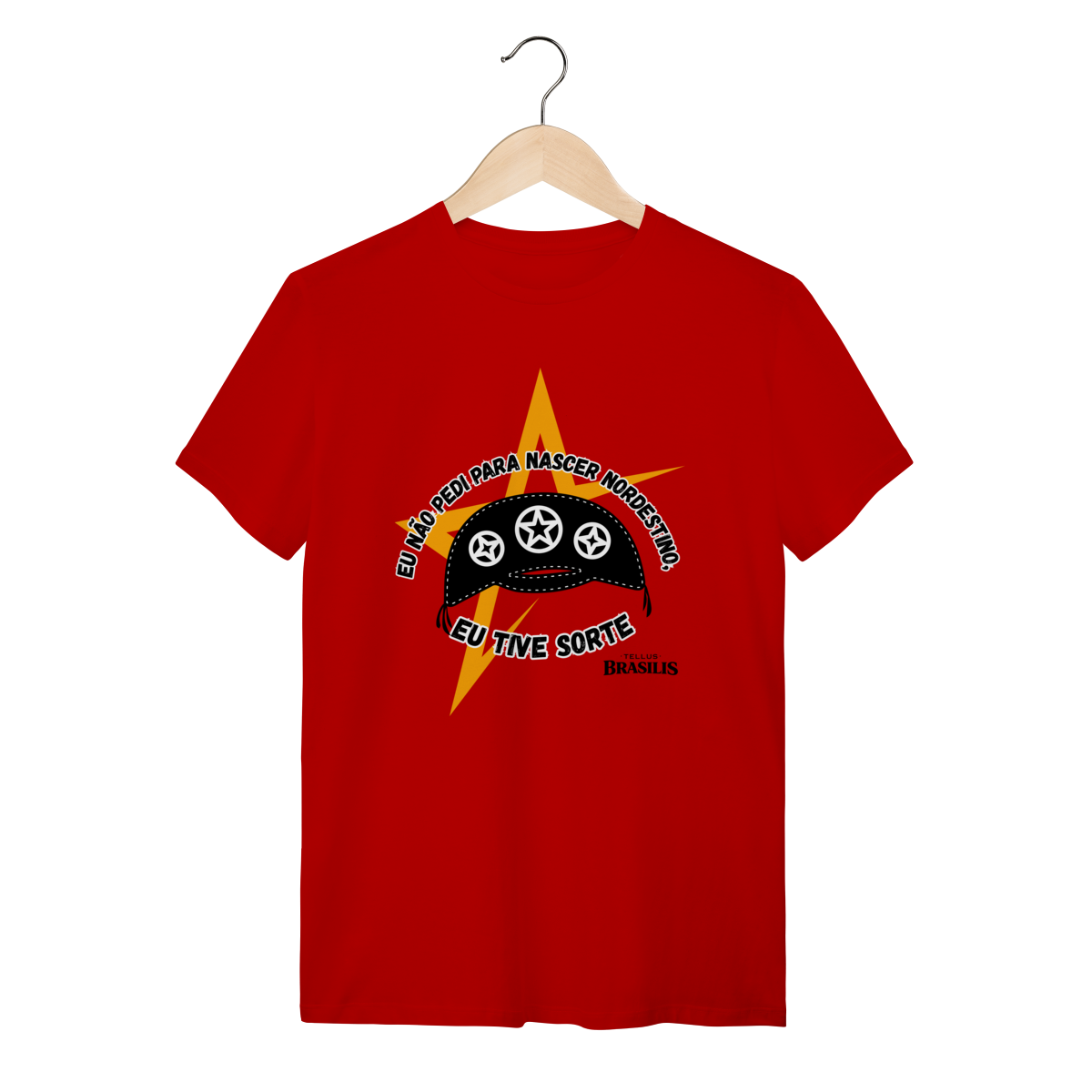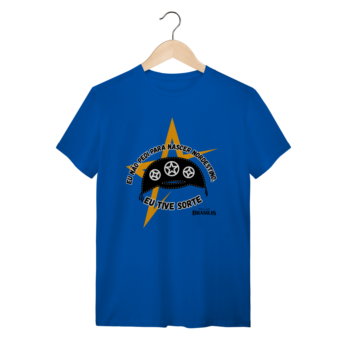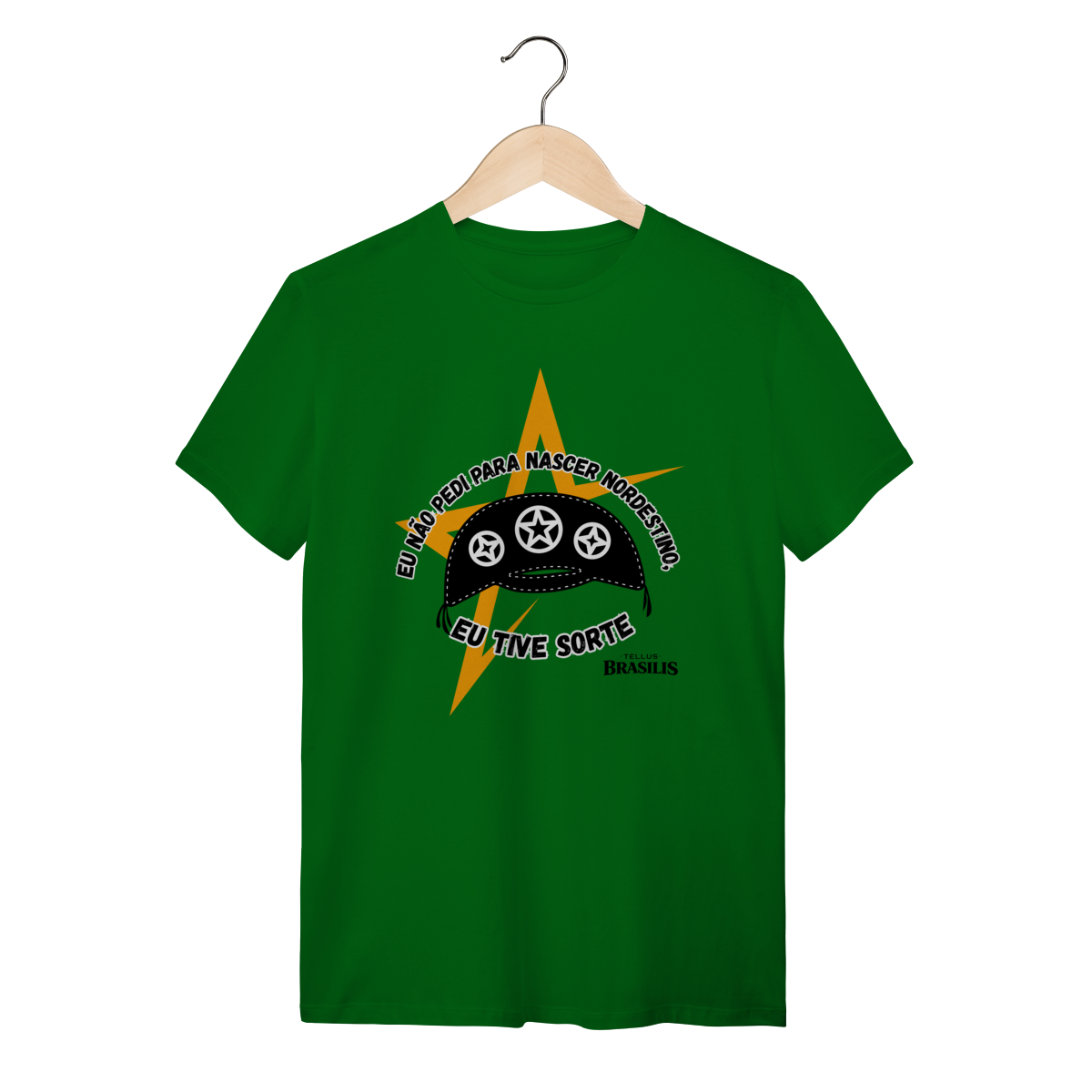 Essa camisa é uma declaração direta de orgulho e identidade. Com tipografia marcante em branco sobre fundo escuro e elementos gráficos fortes em tons de amarelo, a arte transmite atitude, humor e pertencimento. A frase “Eu não pedi para ser nordestino — eu tive sorte” resume, de forma simples e poderosa, o sentimento de quem carrega no peito a força, a cultura e a resiliência do Nordeste.