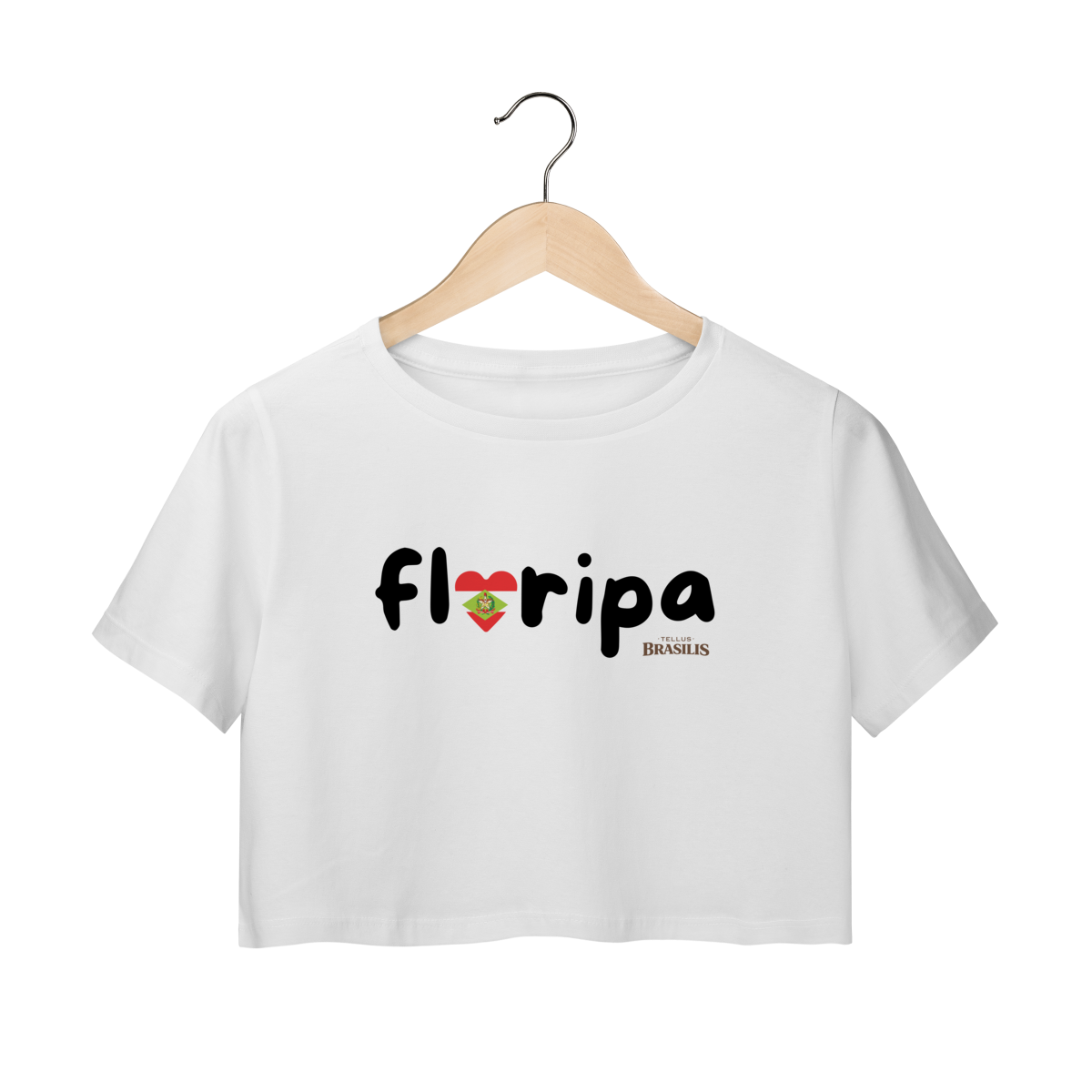 O modelo cropped traz a transcrição Floripa acompanhada de um coração nas cores de Santa Catarina, simbolizando amor, orgulho e a conexão especial com a capital catarinense. Minimalista e marcante, a estampa representa o carinho por uma cidade conhecida por suas praias deslumbrantes, natureza preservada, cultura diversa e qualidade de vida, traduzindo em poucos elementos um sentimento forte de pertencimento.