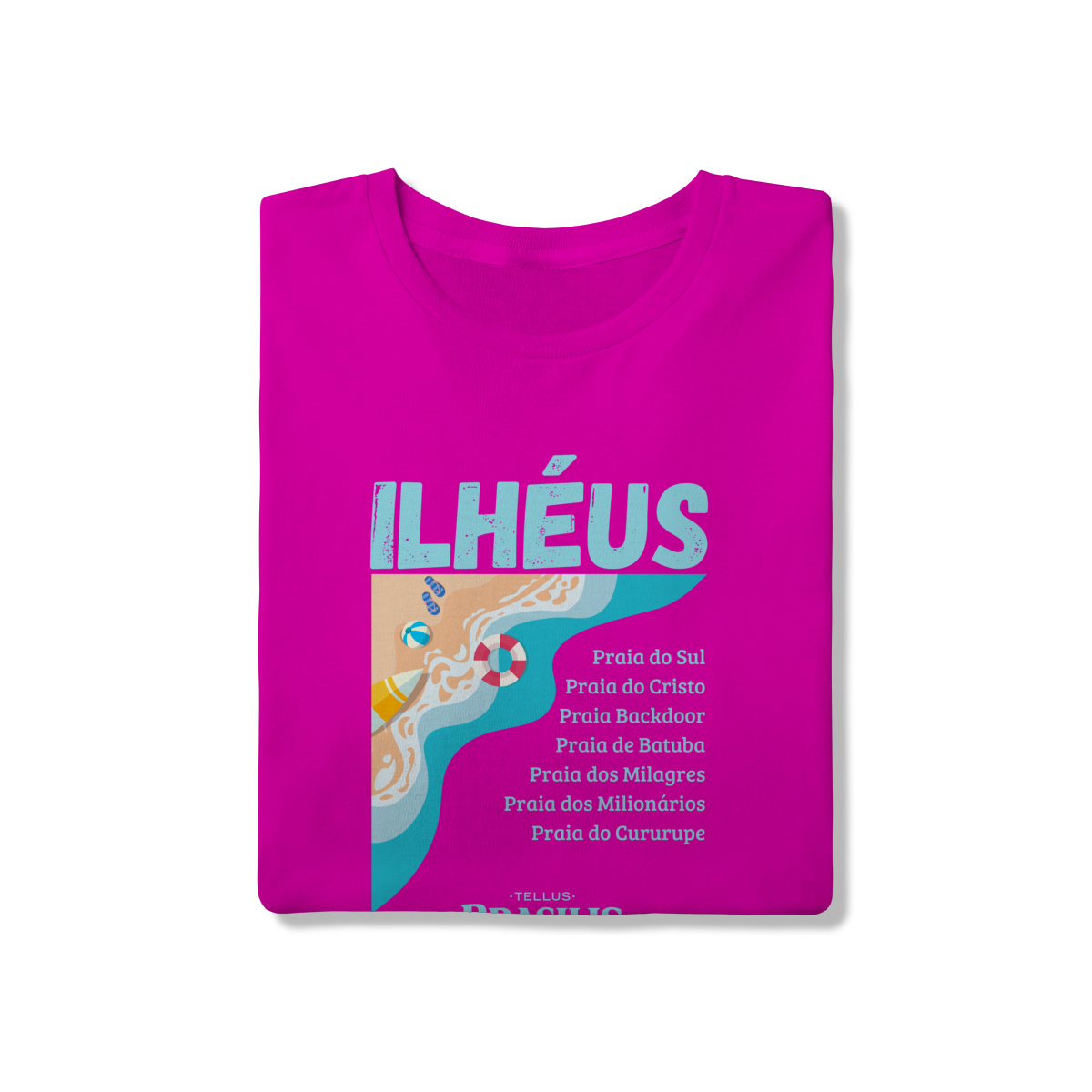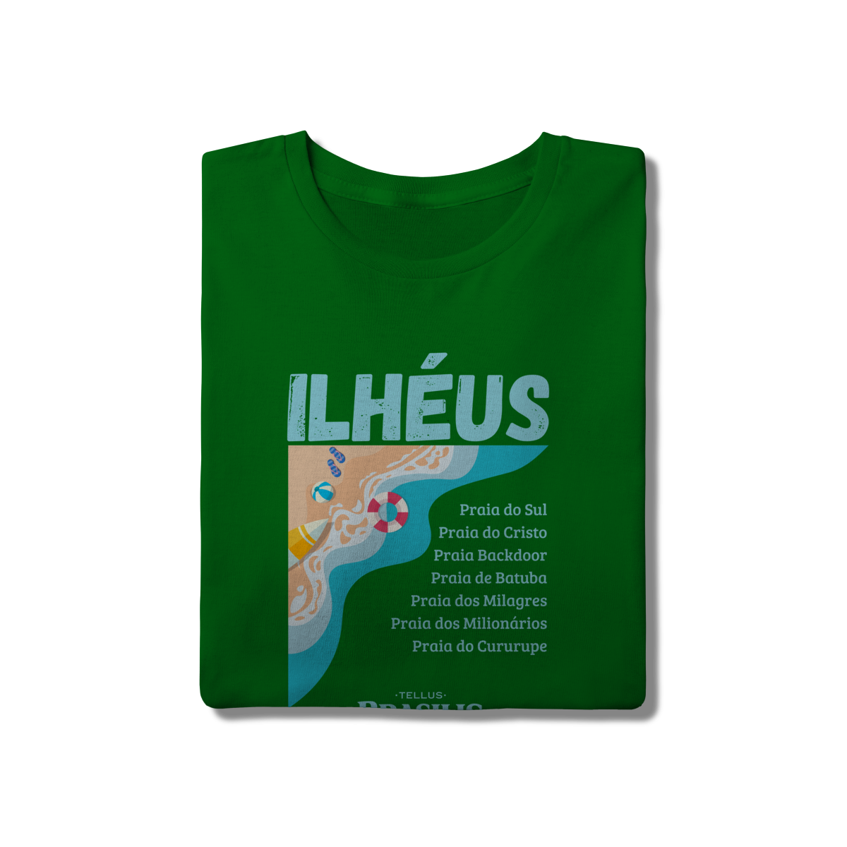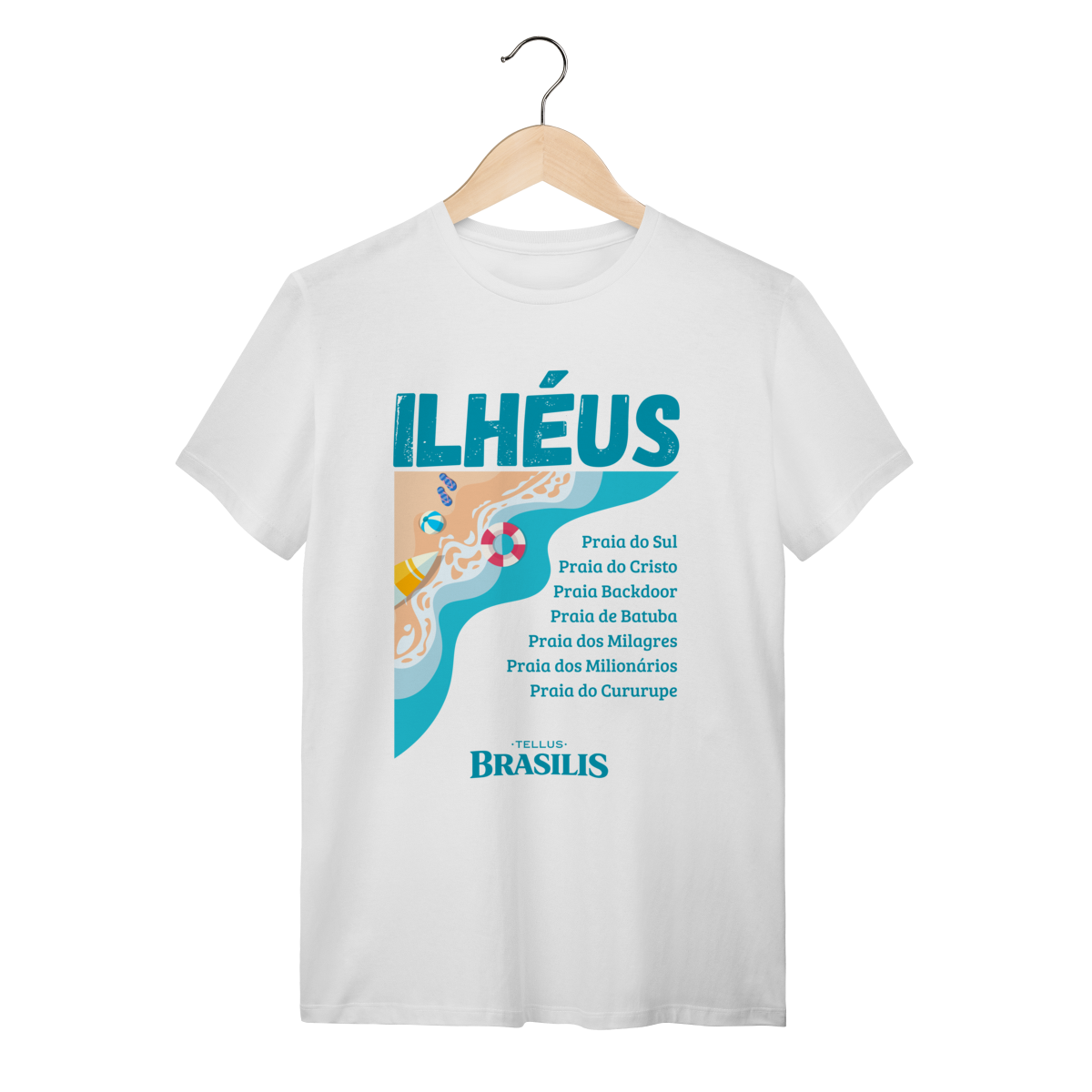Esta camisa celebra Ilhéus, Bahia, destacando o litoral exuberante da cidade por meio de uma estampa leve e moderna, inspirada no encontro do mar com a areia. O design valoriza algumas das praias mais conhecidas da região — como Praia do Sul, Praia do Cristo, Backdoor, Batuba, Milagres, Milionários e Cururupe — formando um verdadeiro mapa afetivo do destino.