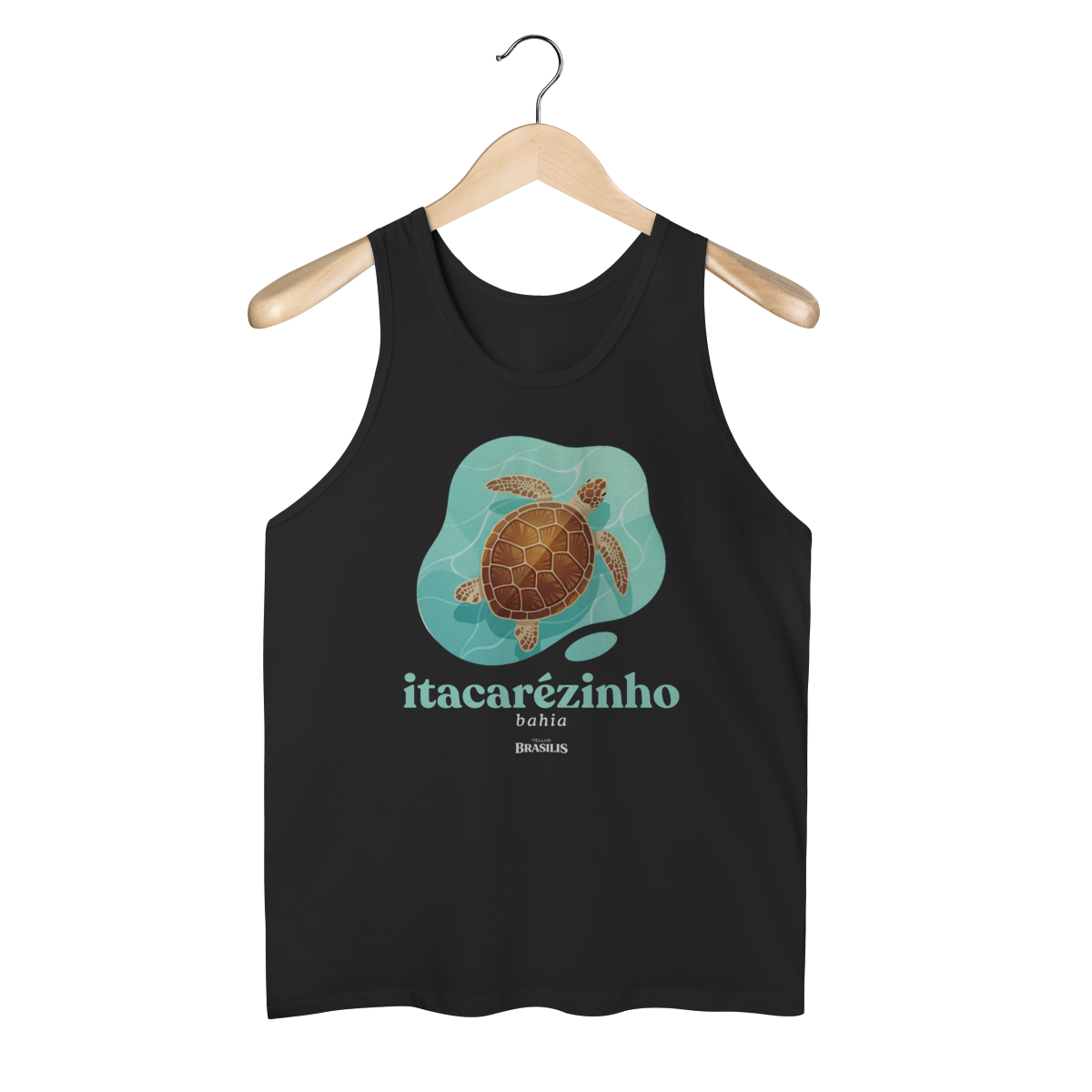 Inspirada na beleza preservada da Praia de Itacarezinho, esta estampa para camiseta regata traduz a leveza e a pureza das águas cristalinas que fazem desse destino um verdadeiro refúgio natural. A ilustração da tartaruga marinha vista de cima simboliza a rica vida marinha da região e o compromisso com a preservação ambiental, marca registrada de Itacarézinho.