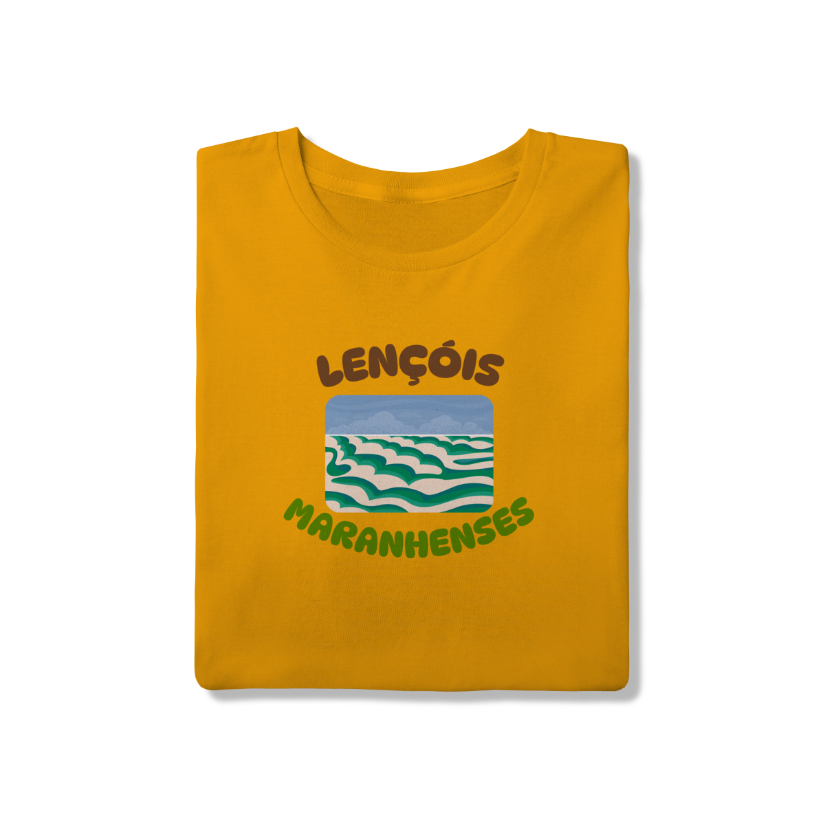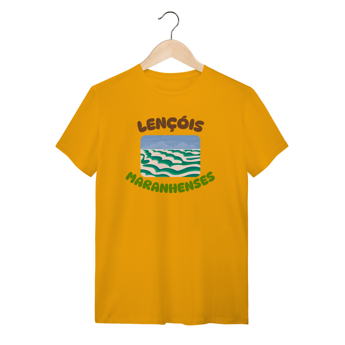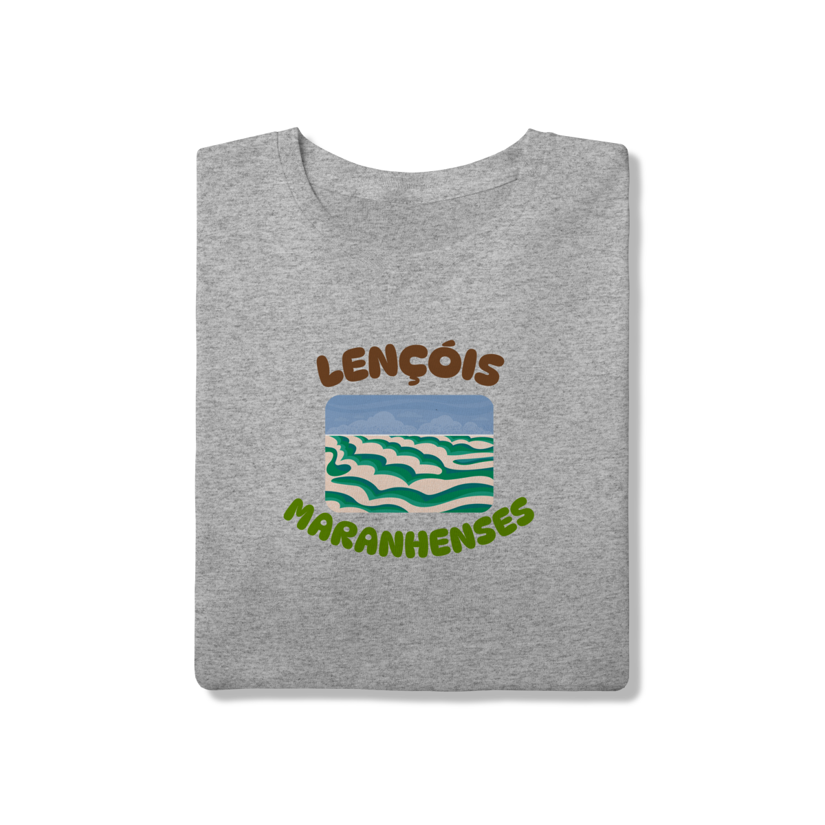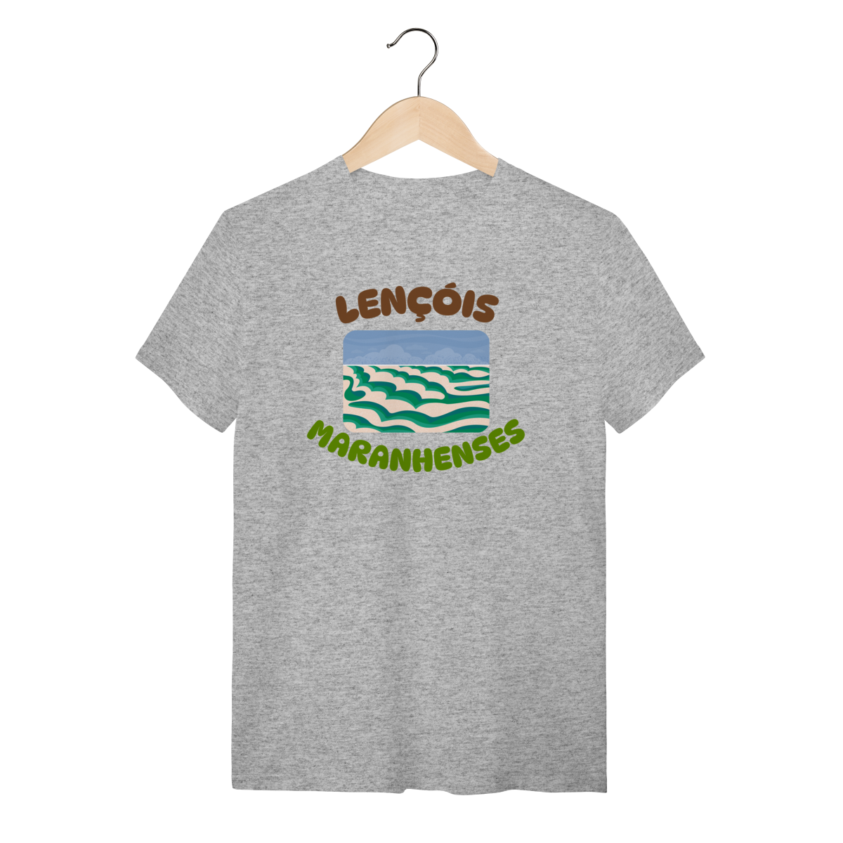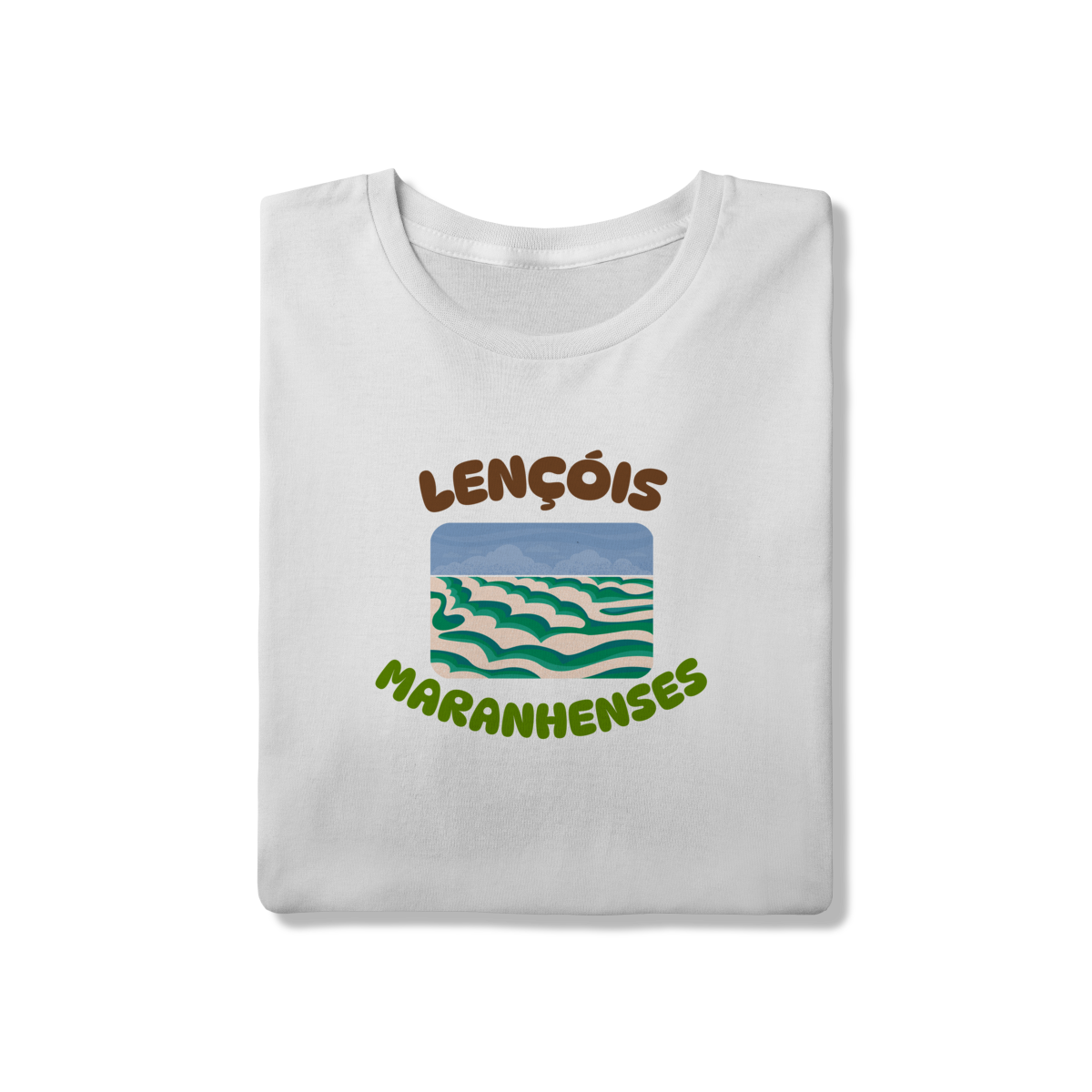 Esta camisa traz uma interpretação artística dos Lençóis Maranhenses, destacando o movimento orgânico das dunas em camadas suaves e sinuosas. A ilustração não busca o realismo fotográfico, mas sim traduzir a sensação do lugar: a repetição hipnotizante das areias claras contrastando com os tons verdes e azulados das lagoas, criando um cenário quase onírico, leve e fluido, como se a paisagem estivesse em constante transformação.