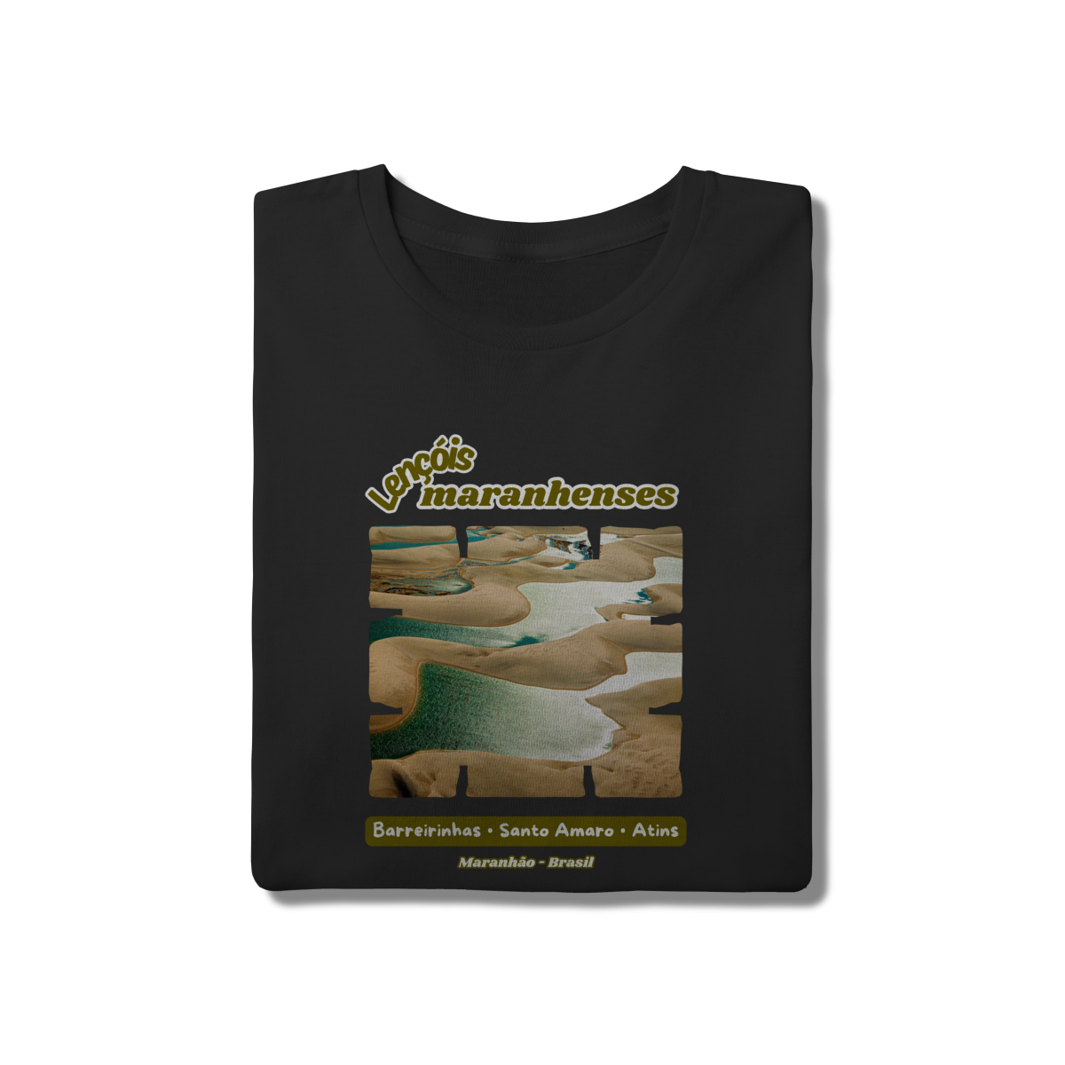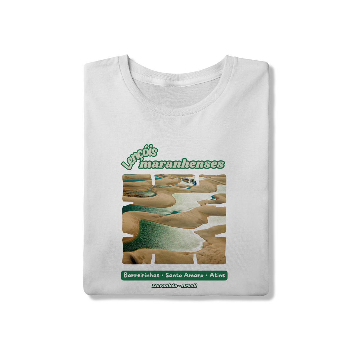 Esta camisa celebra a paisagem única dos Lençóis Maranhenses, um dos cenários naturais mais impressionantes do Brasil. A estampa destaca o contraste hipnotizante entre as dunas de areia clara e as lagoas de águas cristalinas, que se formam no período das chuvas e transformam o deserto em um verdadeiro mosaico de cores e reflexos.