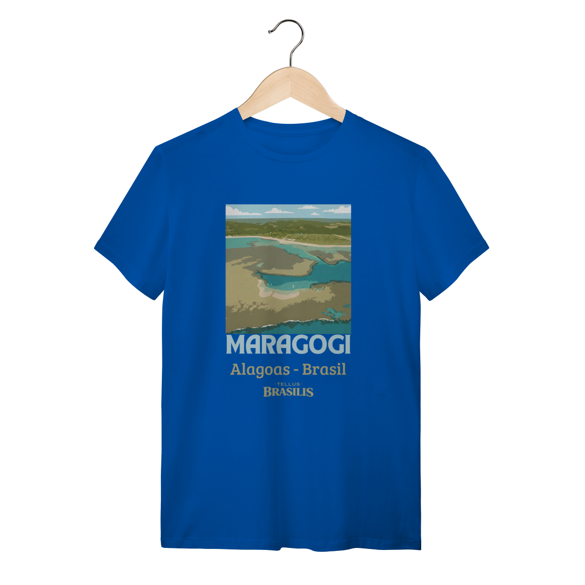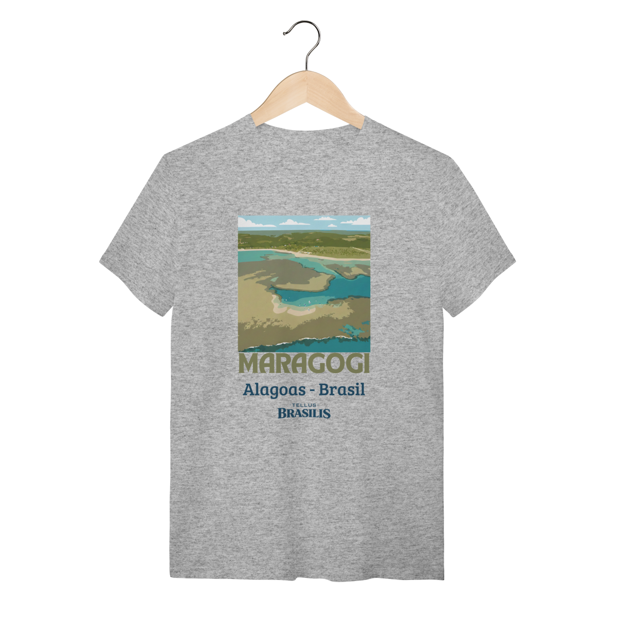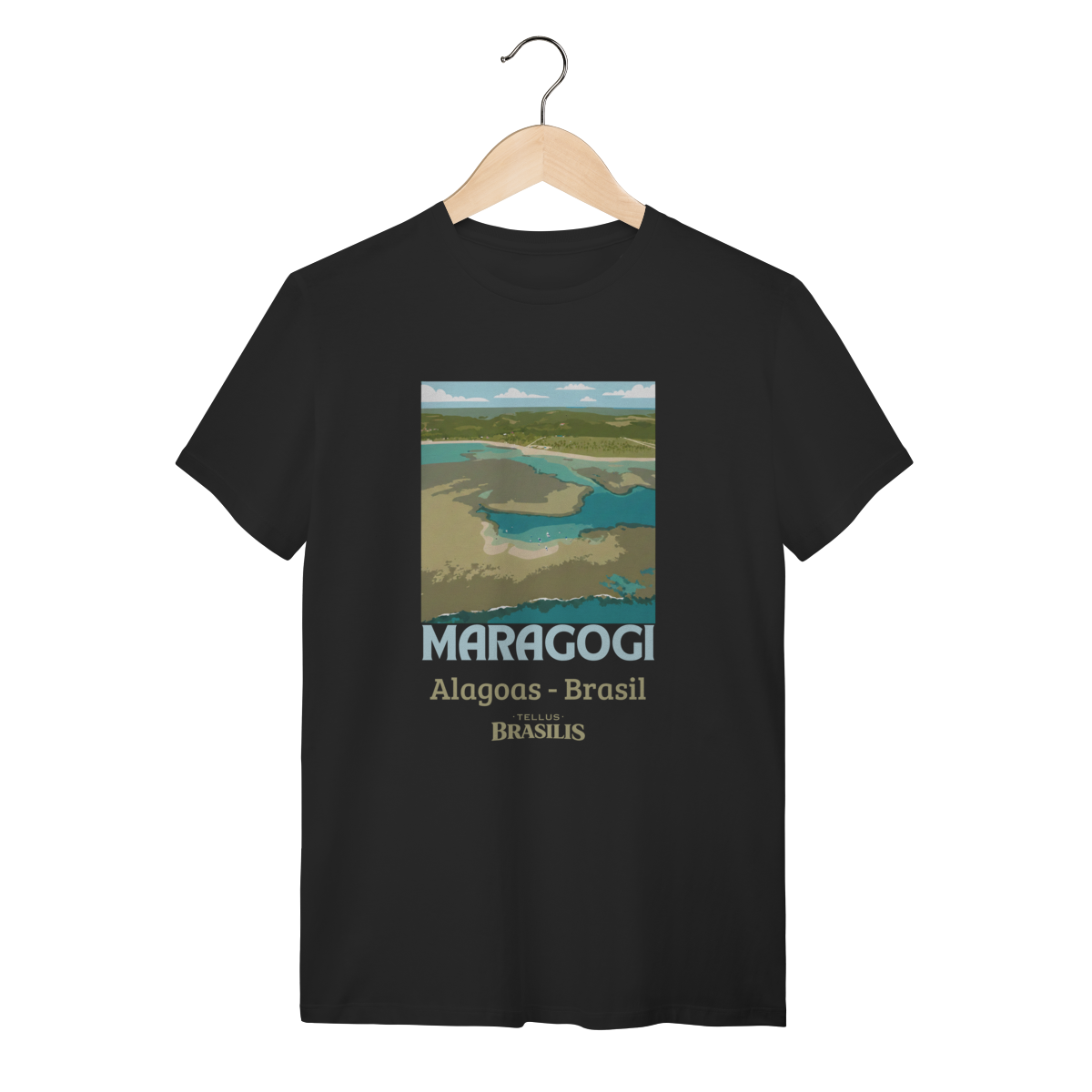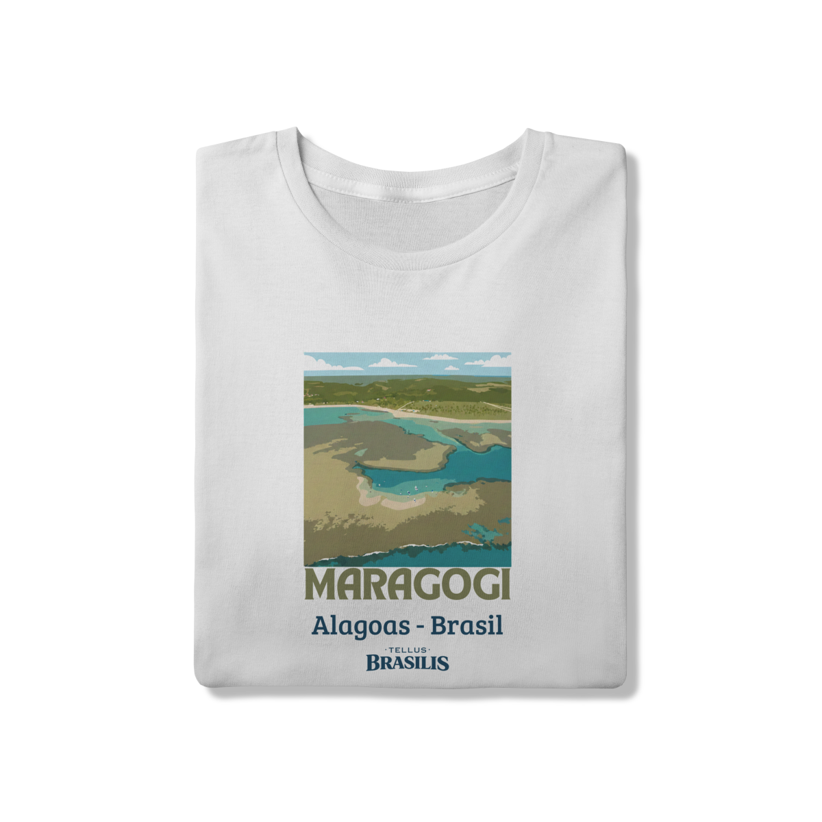 Esta camisa retrata a essência de Maragogi, um dos destinos mais encantadores do litoral brasileiro. A imagem estilizada vista de cima destaca as famosas águas claras e rasas que formam as piscinas naturais — as icônicas galés — verdadeiros espelhos de tons azul-turquesa e verde, que fazem Maragogi ser conhecida como o “Caribe Brasileiro”.