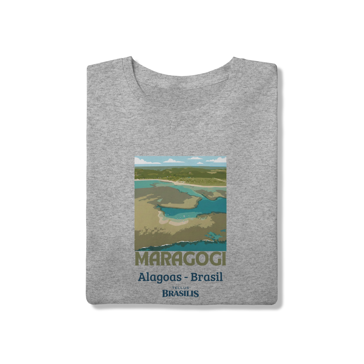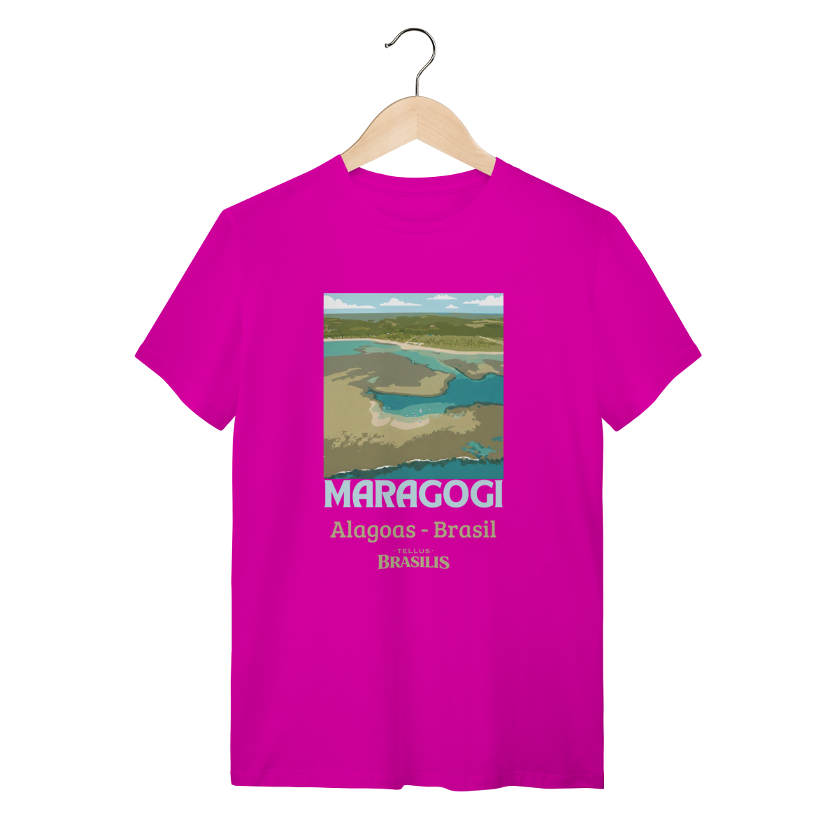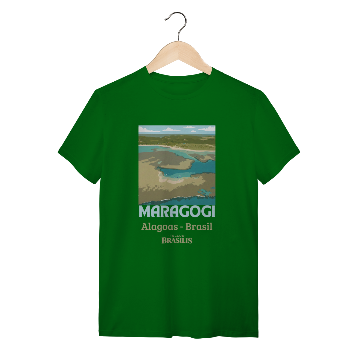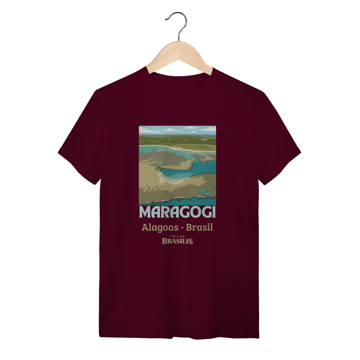 Esta camisa retrata a essência de Maragogi, um dos destinos mais encantadores do litoral brasileiro. A imagem estilizada vista de cima destaca as famosas águas claras e rasas que formam as piscinas naturais — as icônicas galés — verdadeiros espelhos de tons azul-turquesa e verde, que fazem Maragogi ser conhecida como o “Caribe Brasileiro”.