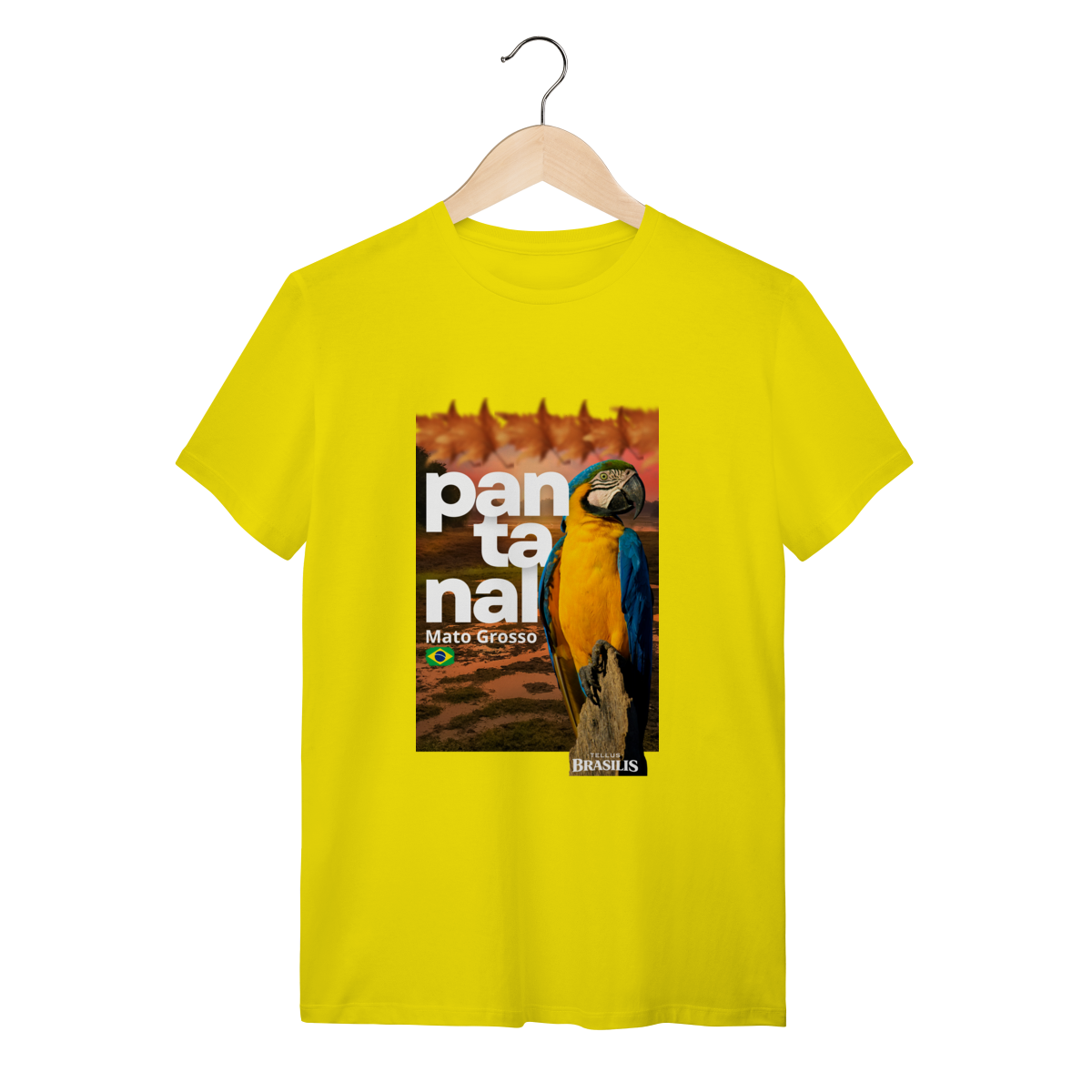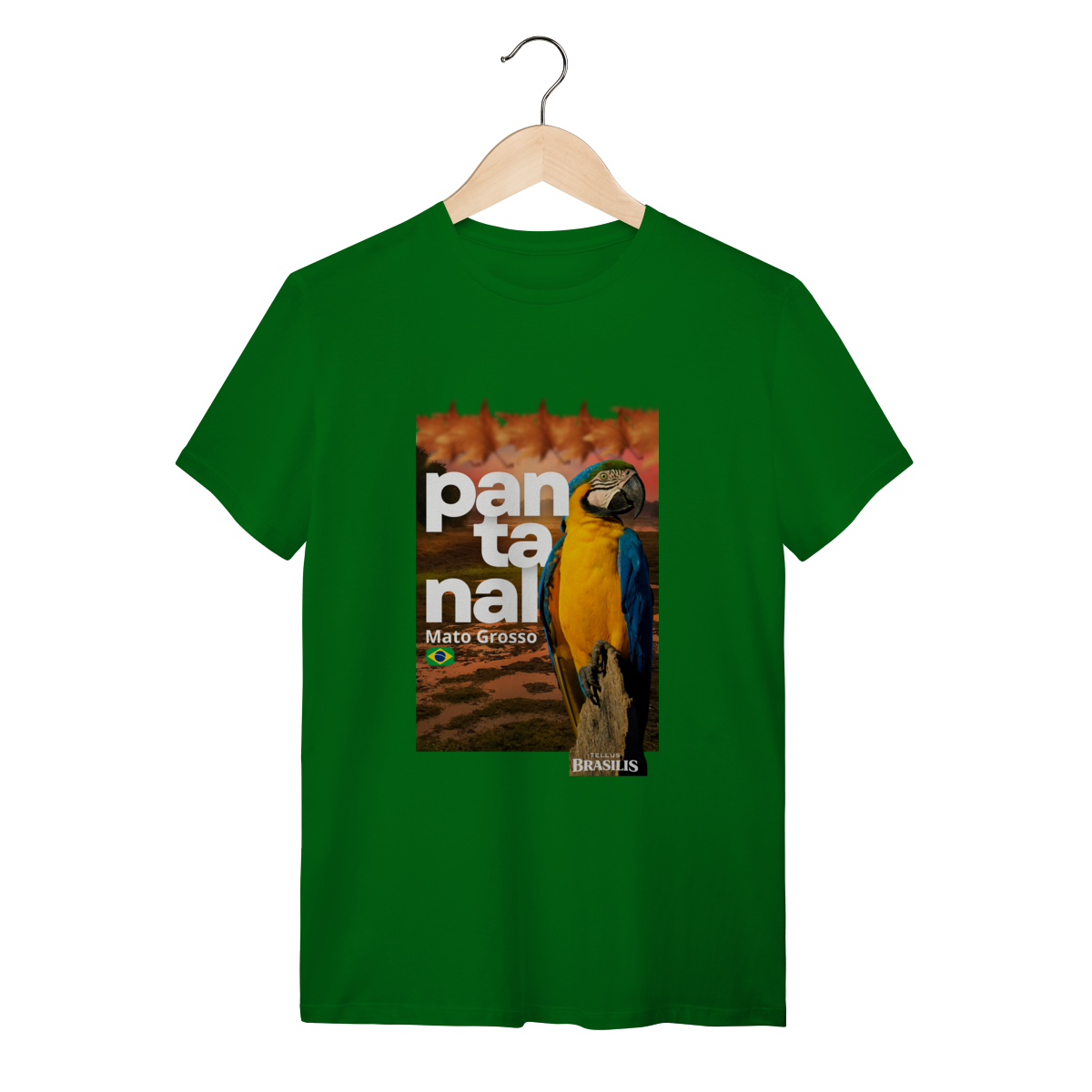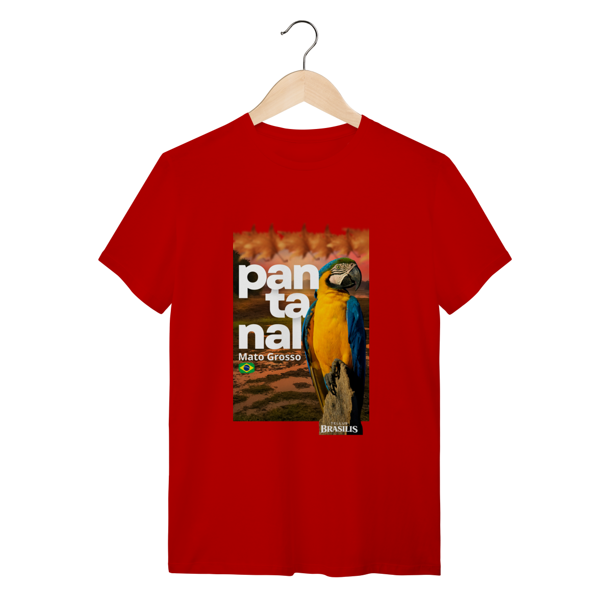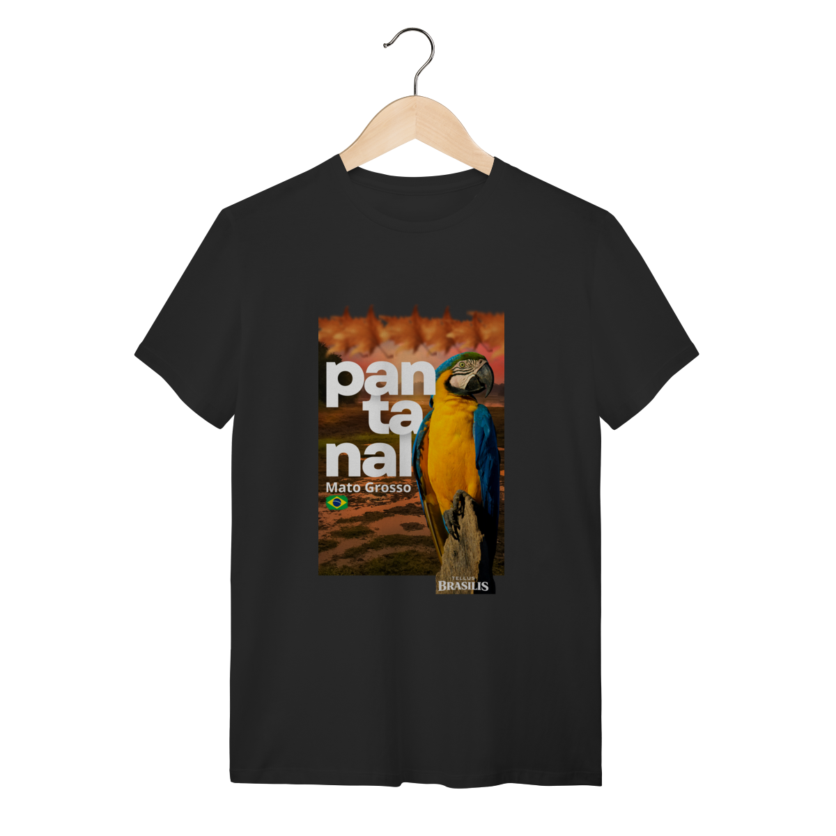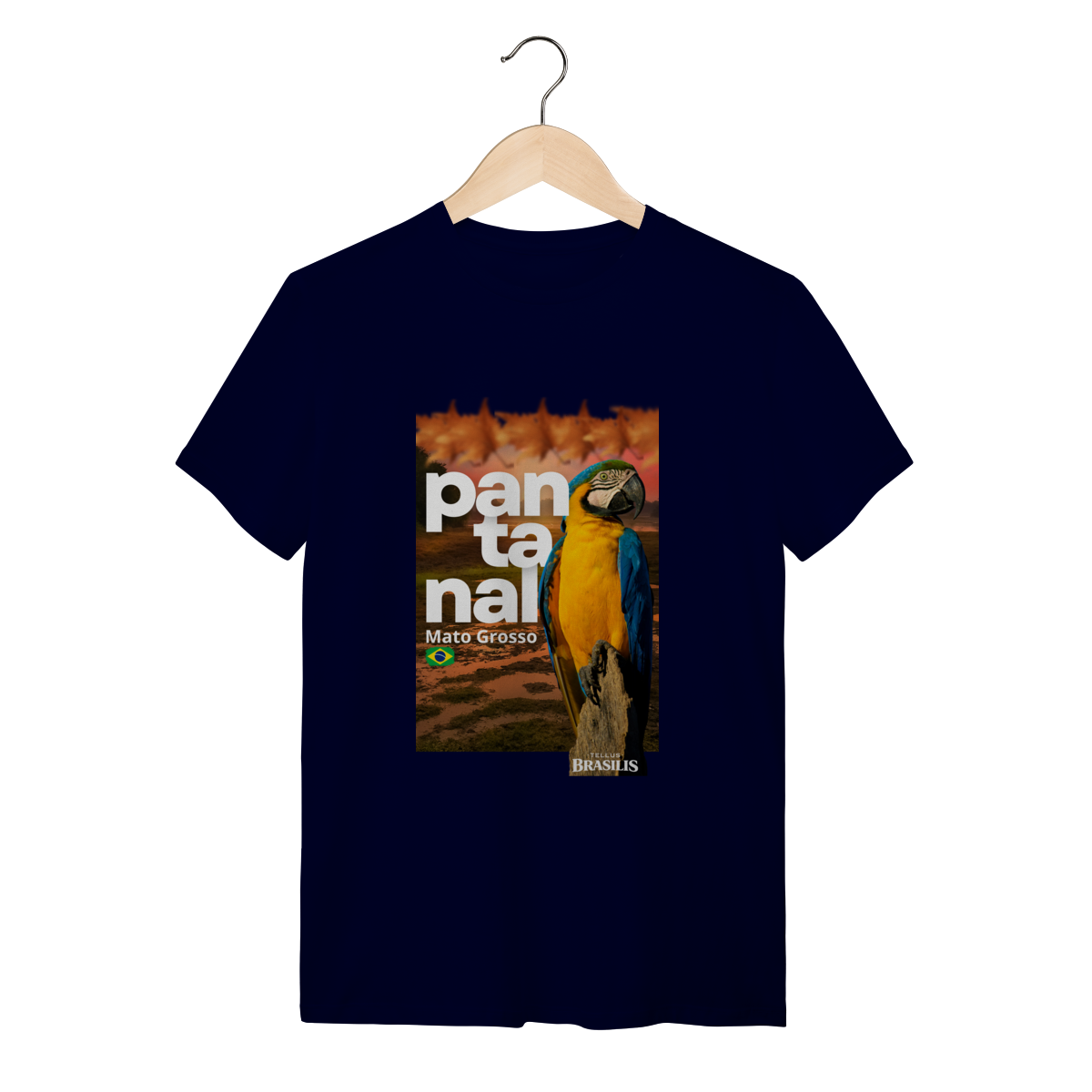 Uma camisa cheia de significado, ideal também como souvenir/lembrança para quem visitou o Pantanal mato-grossense ou para quem admira a biodiversidade brasileira e deseja levar consigo uma recordação visualmente marcante desse bioma único.
