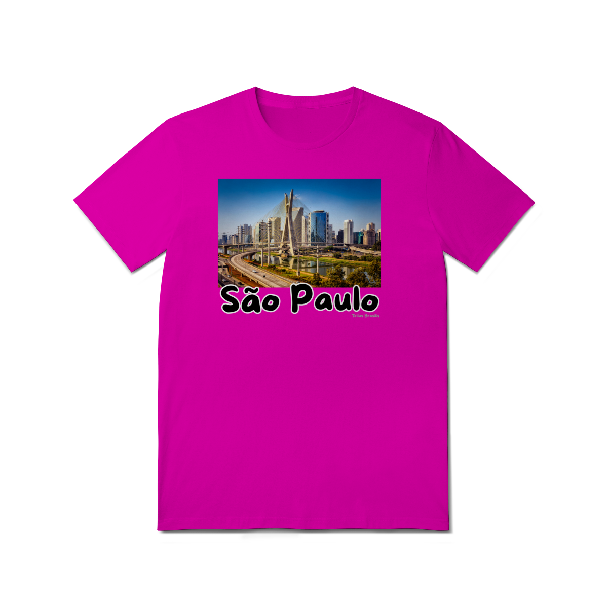 Esta camisa destaca a Ponte Estaiada Octávio Frias de Oliveira, um dos maiores ícones arquitetônicos de São Paulo. A estampa representa modernidade, movimento e inovação, refletindo o ritmo intenso e a força urbana da maior metrópole da América do Sul.