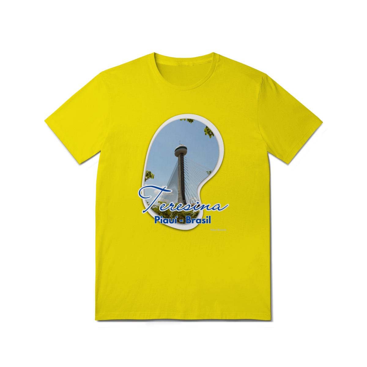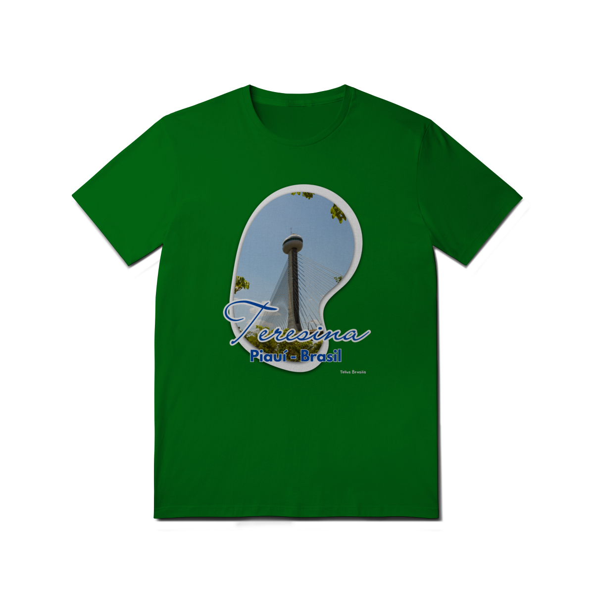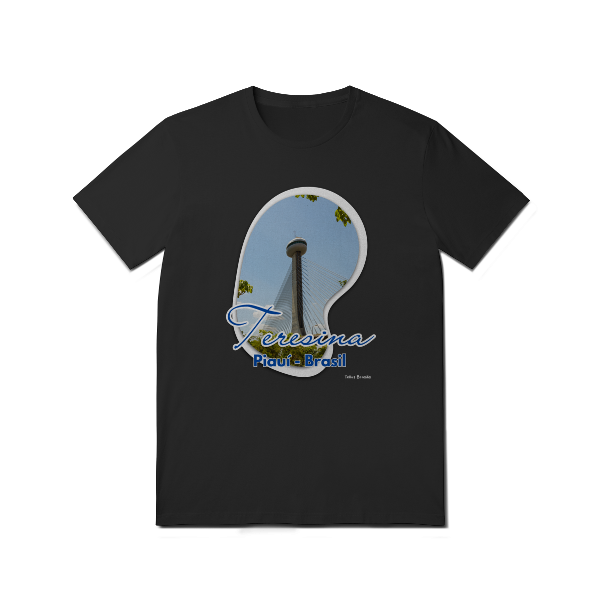Esta camisa destaca Teresina por meio da imagem da imponente Ponte Estaiada João Isidoro França, um dos principais símbolos urbanos da capital piauiense. A composição valoriza a verticalidade da torre, os cabos que desenham linhas no céu e o contraste entre arquitetura moderna e natureza ao redor.