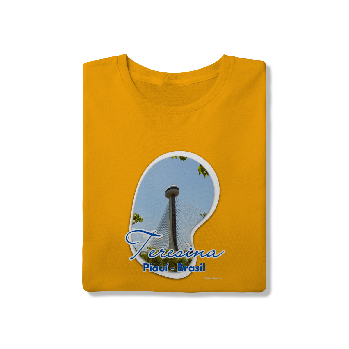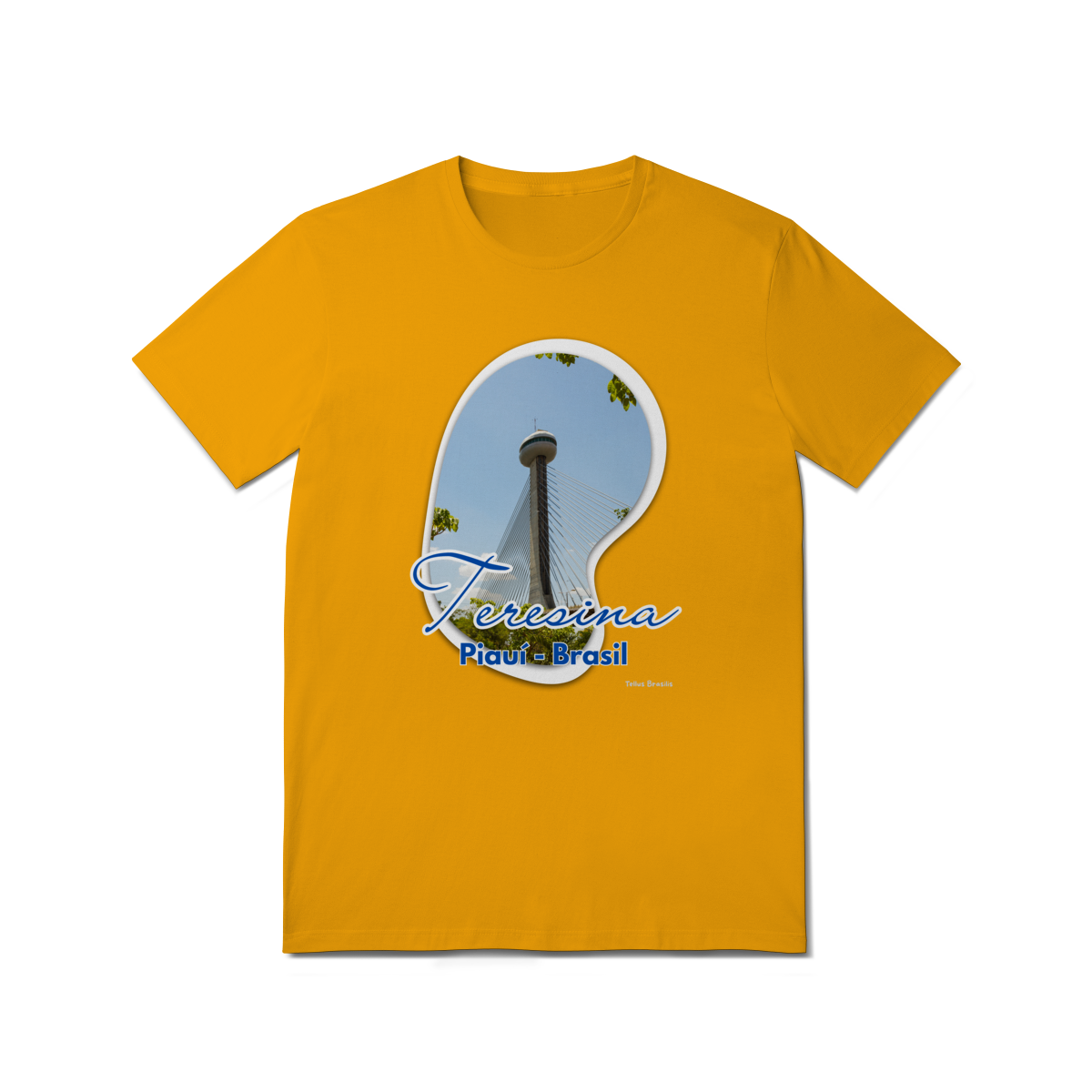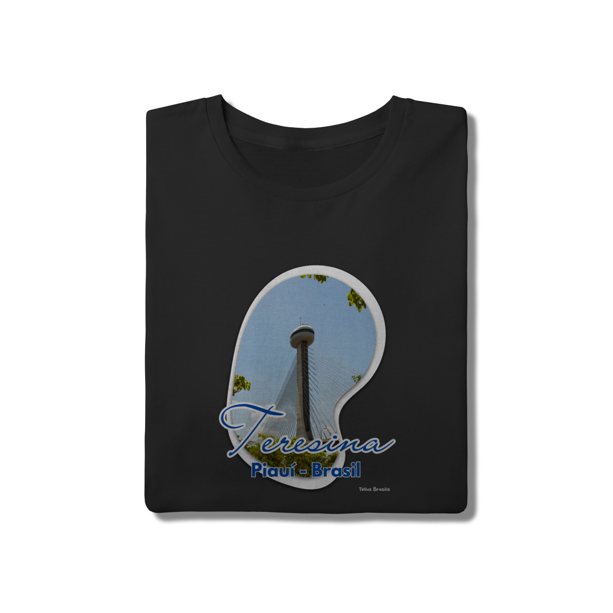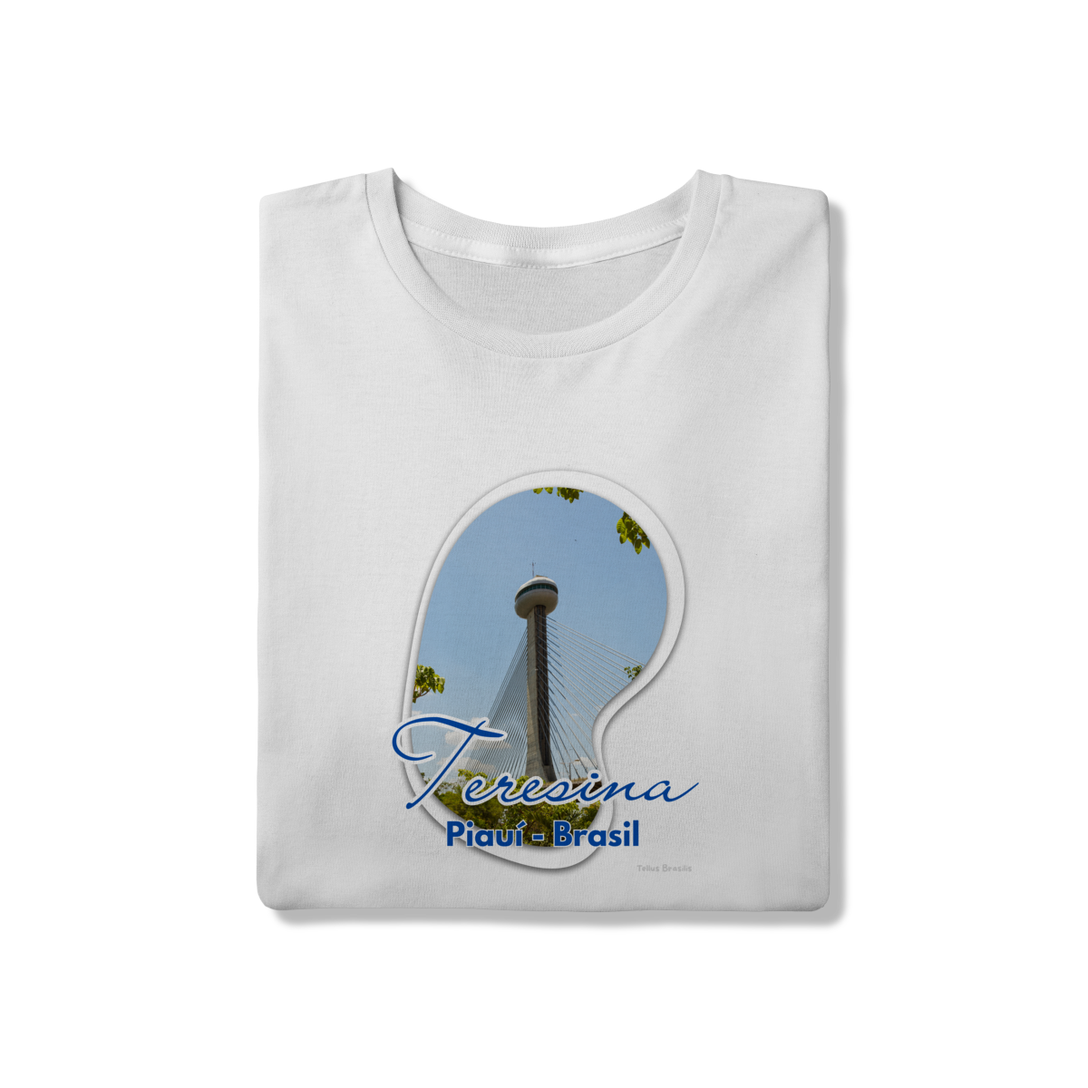 Esta camisa destaca Teresina por meio da imagem da imponente Ponte Estaiada João Isidoro França, um dos principais símbolos urbanos da capital piauiense. A composição valoriza a verticalidade da torre, os cabos que desenham linhas no céu e o contraste entre arquitetura moderna e natureza ao redor.