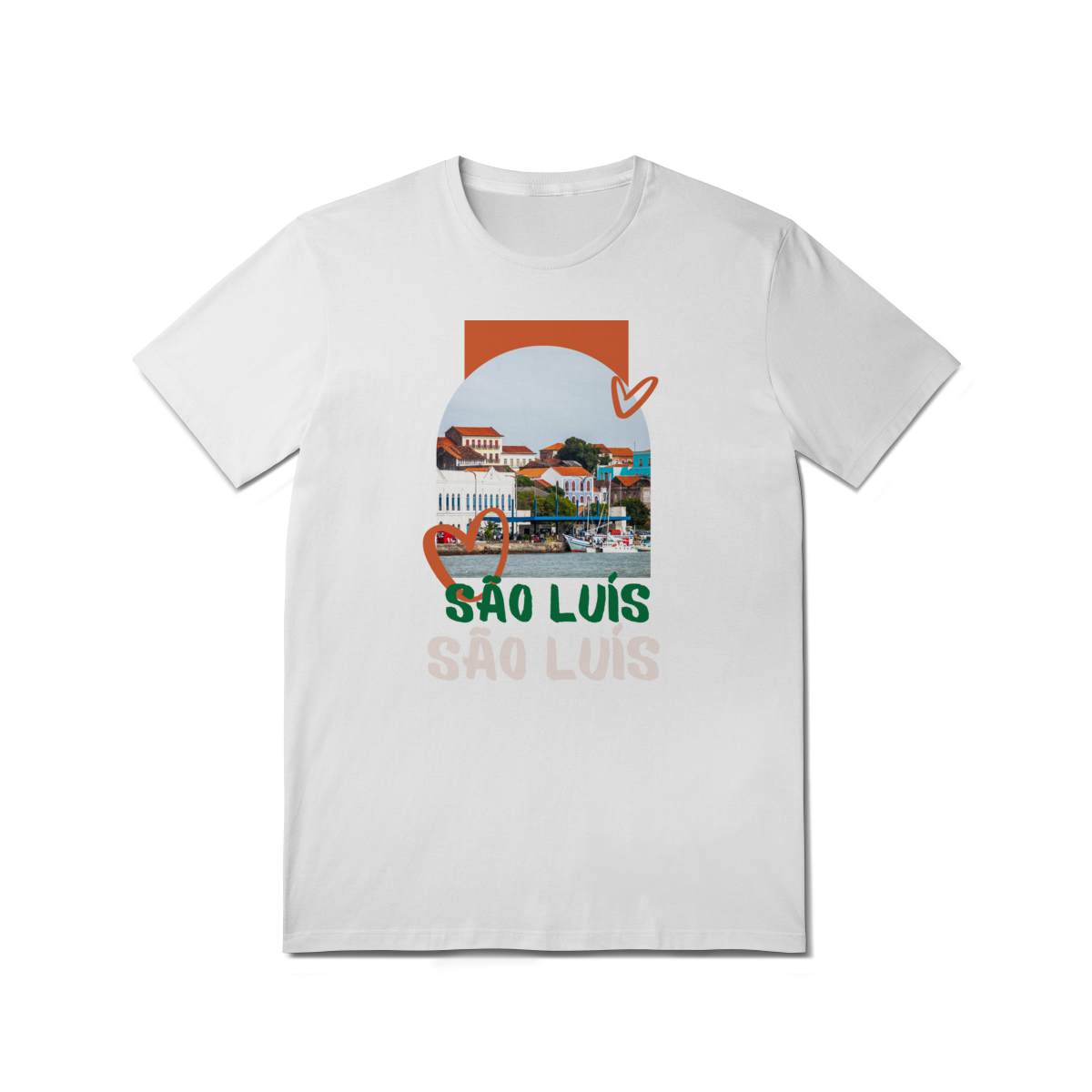 Esta camisa celebra São Luís com uma composição que valoriza o charme do seu centro histórico e a forte ligação com o mar. A imagem destaca os casarões coloniais de telhados avermelhados e fachadas marcantes, herança portuguesa que transformou a cidade em Patrimônio Cultural da Humanidade, em diálogo com o cotidiano ribeirinho e as embarcações ancoradas.