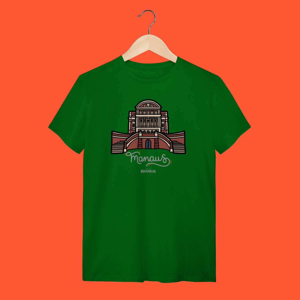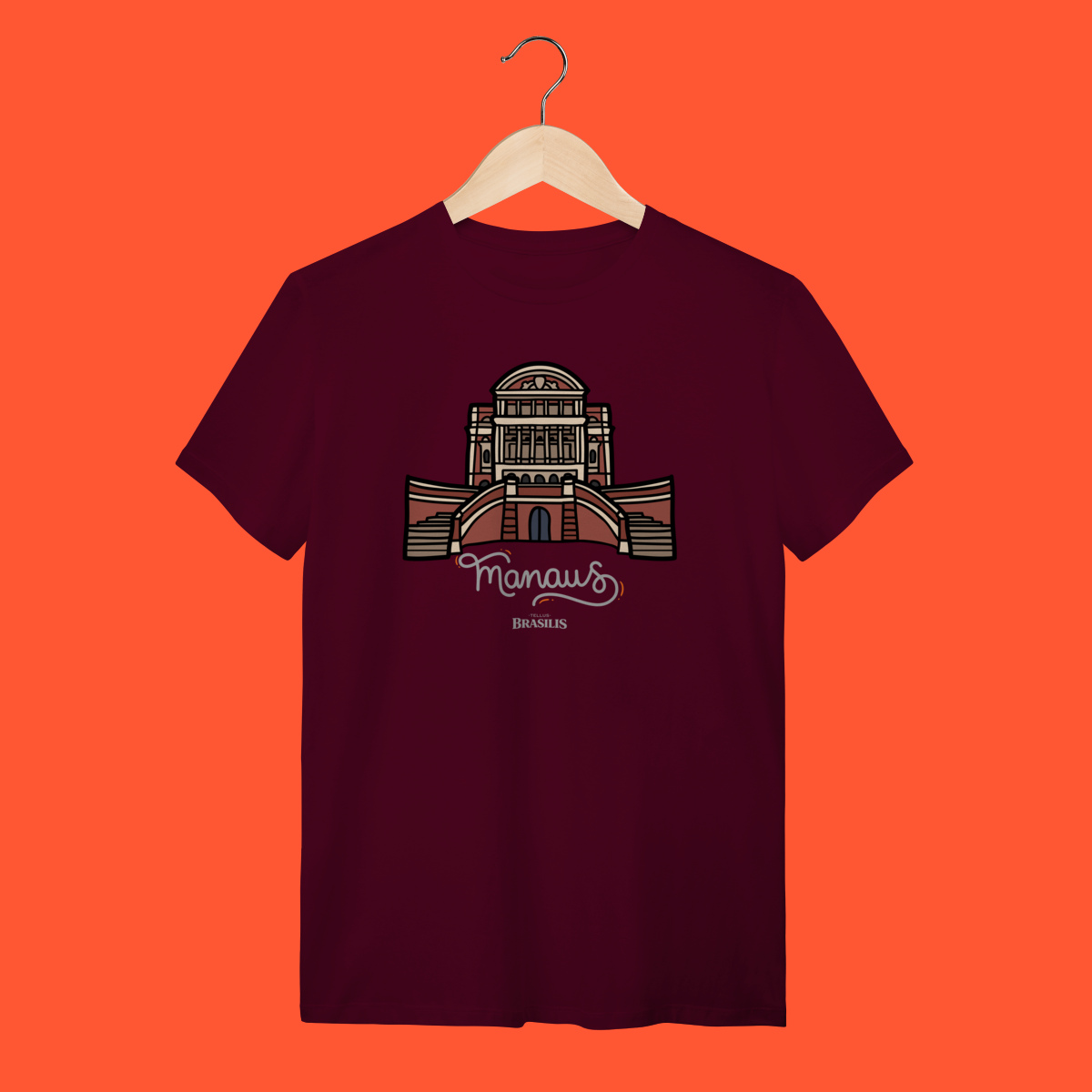 Diferente de representações mais tradicionais, esta arte aposta em uma abordagem gráfica e estilizada, transmitindo sofisticação e identidade cultural de maneira sutil. O resultado é uma estampa que une história e design moderno, perfeita para quem aprecia arte, arquitetura e a riqueza cultural de Manaus.